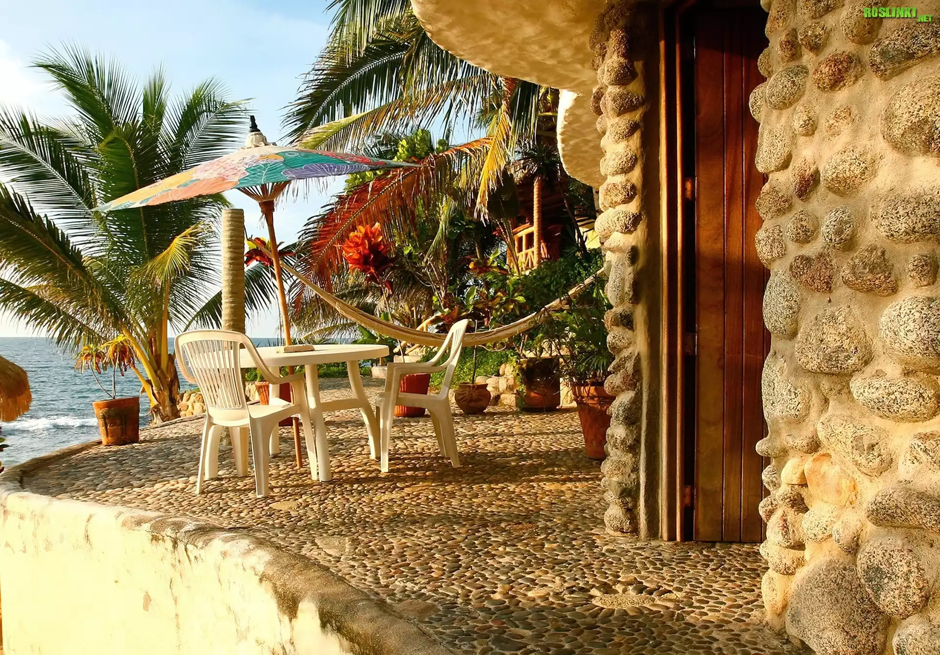 Rośliny: Taras, Widok, Morze, Palmy