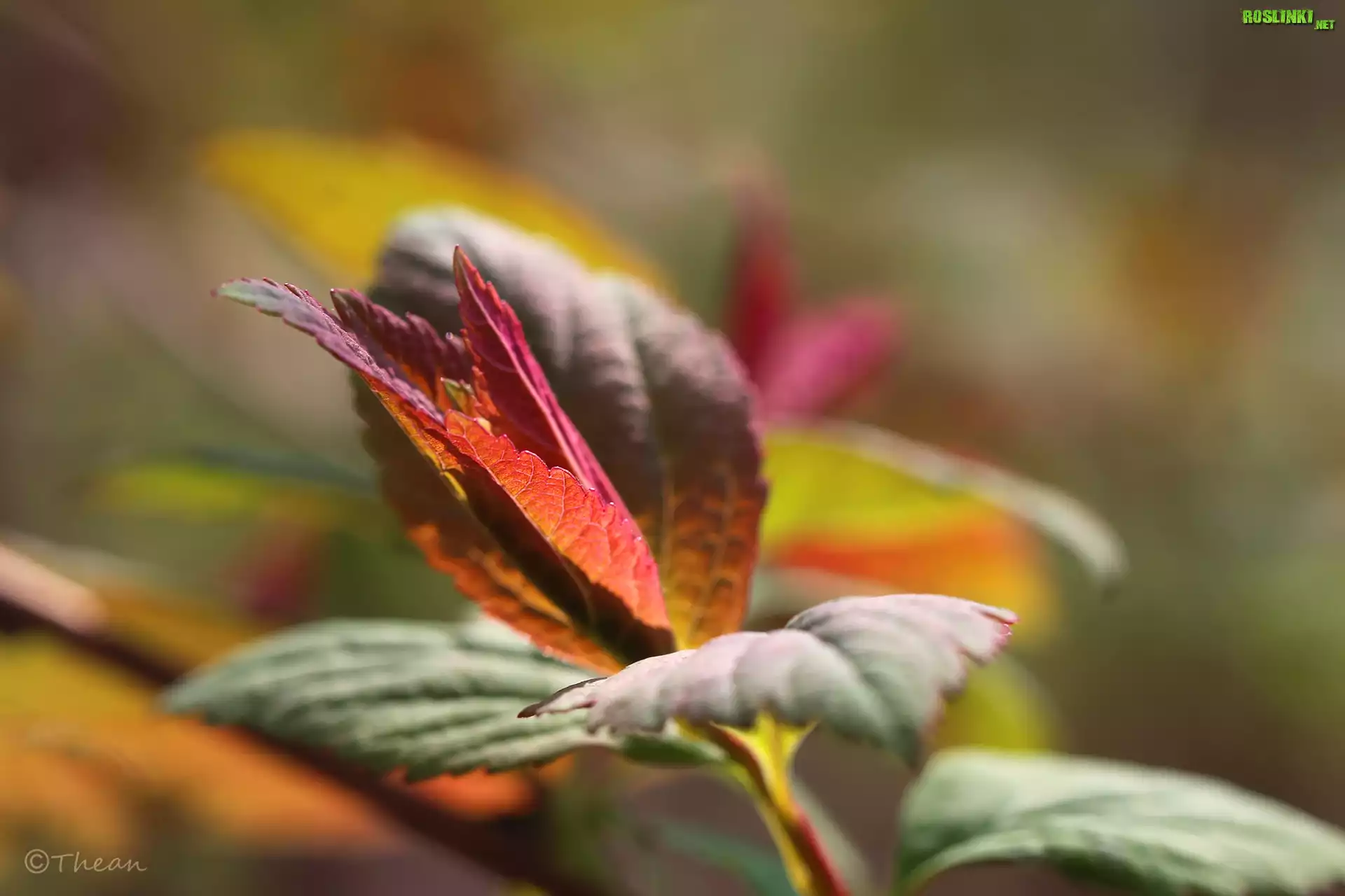 Rośliny: Tawuła Japońska, Krzew, Czerwone, Liście