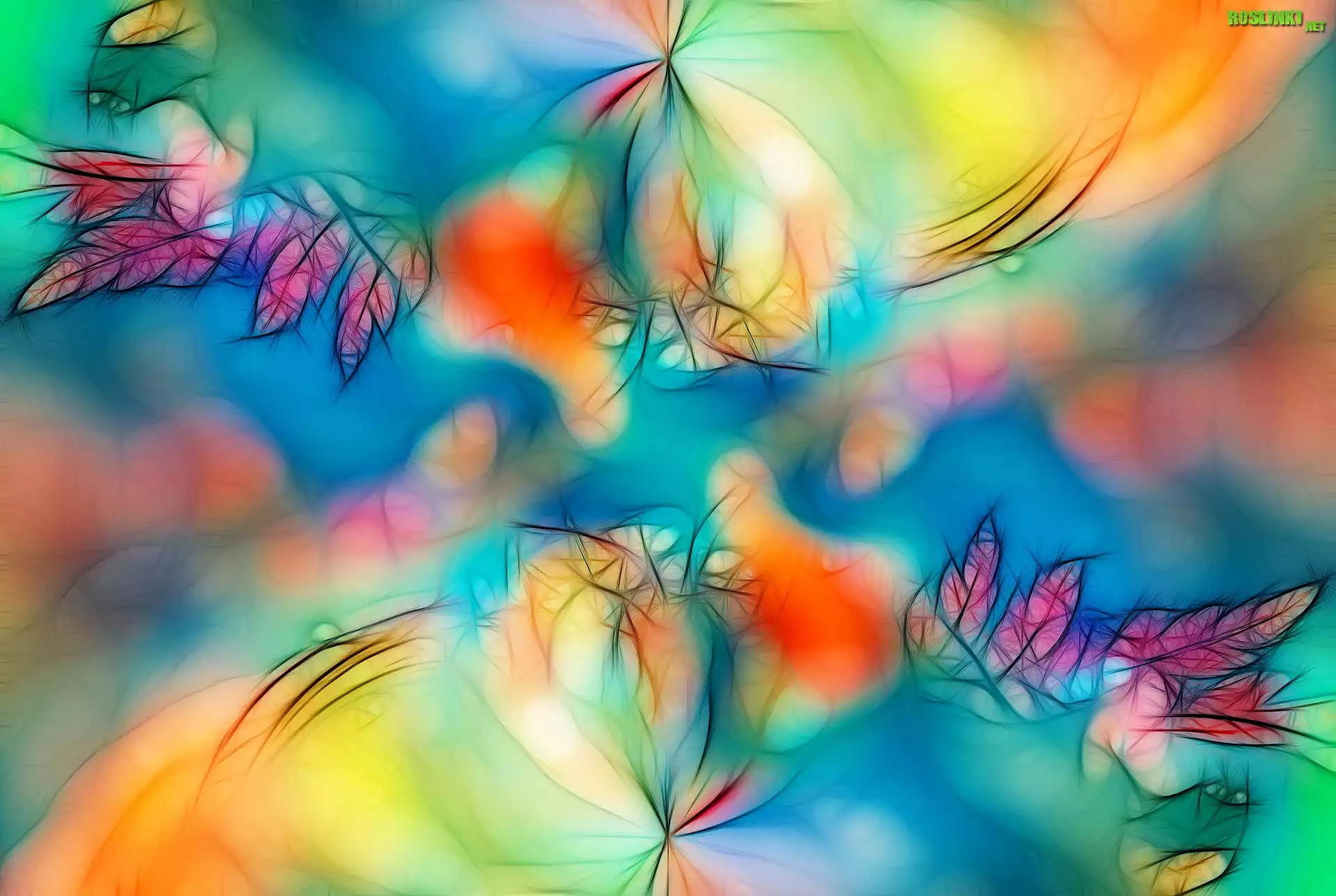 Rośliny: Fractalius, Liście, Kolorowe, Tło