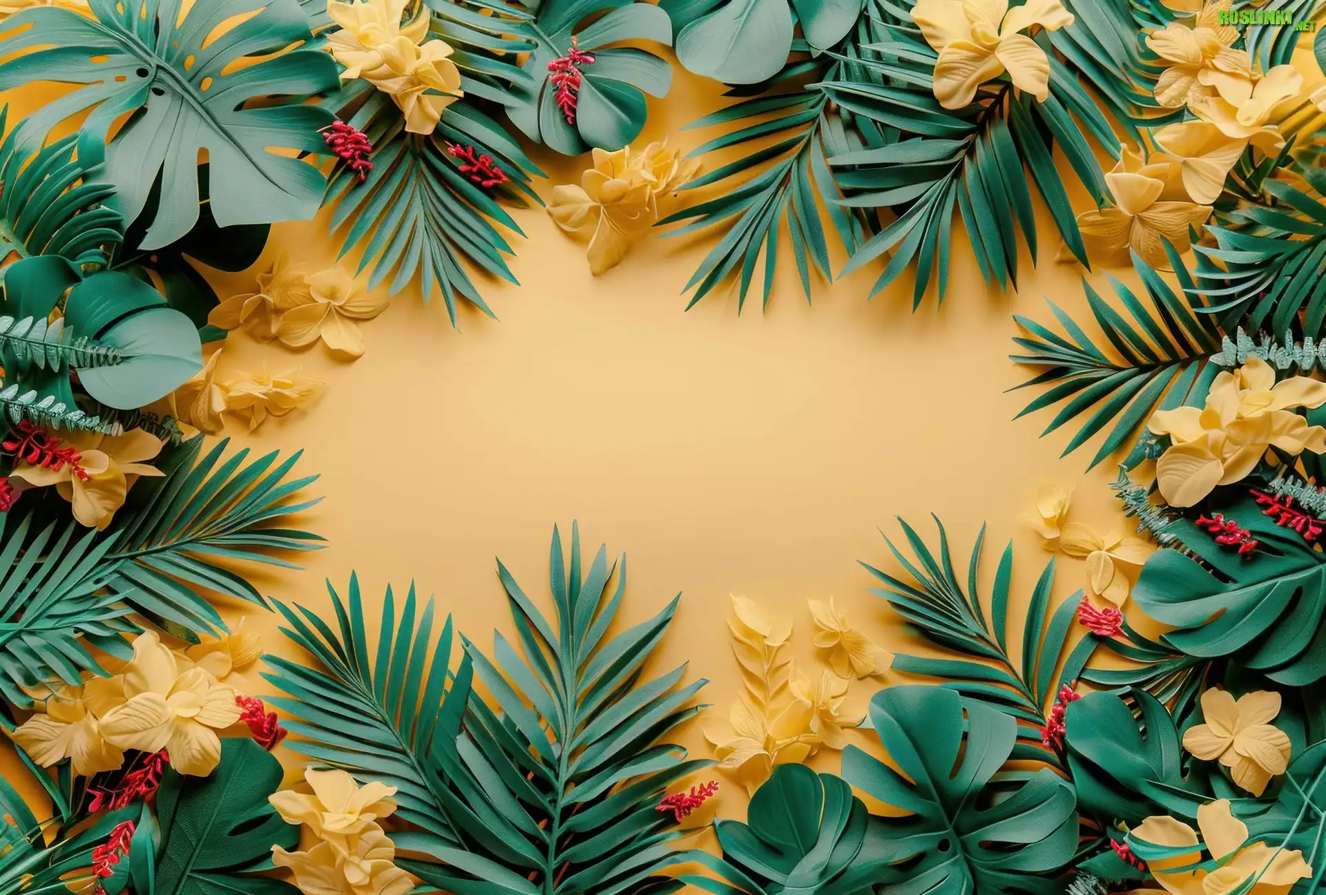 Rośliny: Żółte, Kwiaty, Liście, Tło