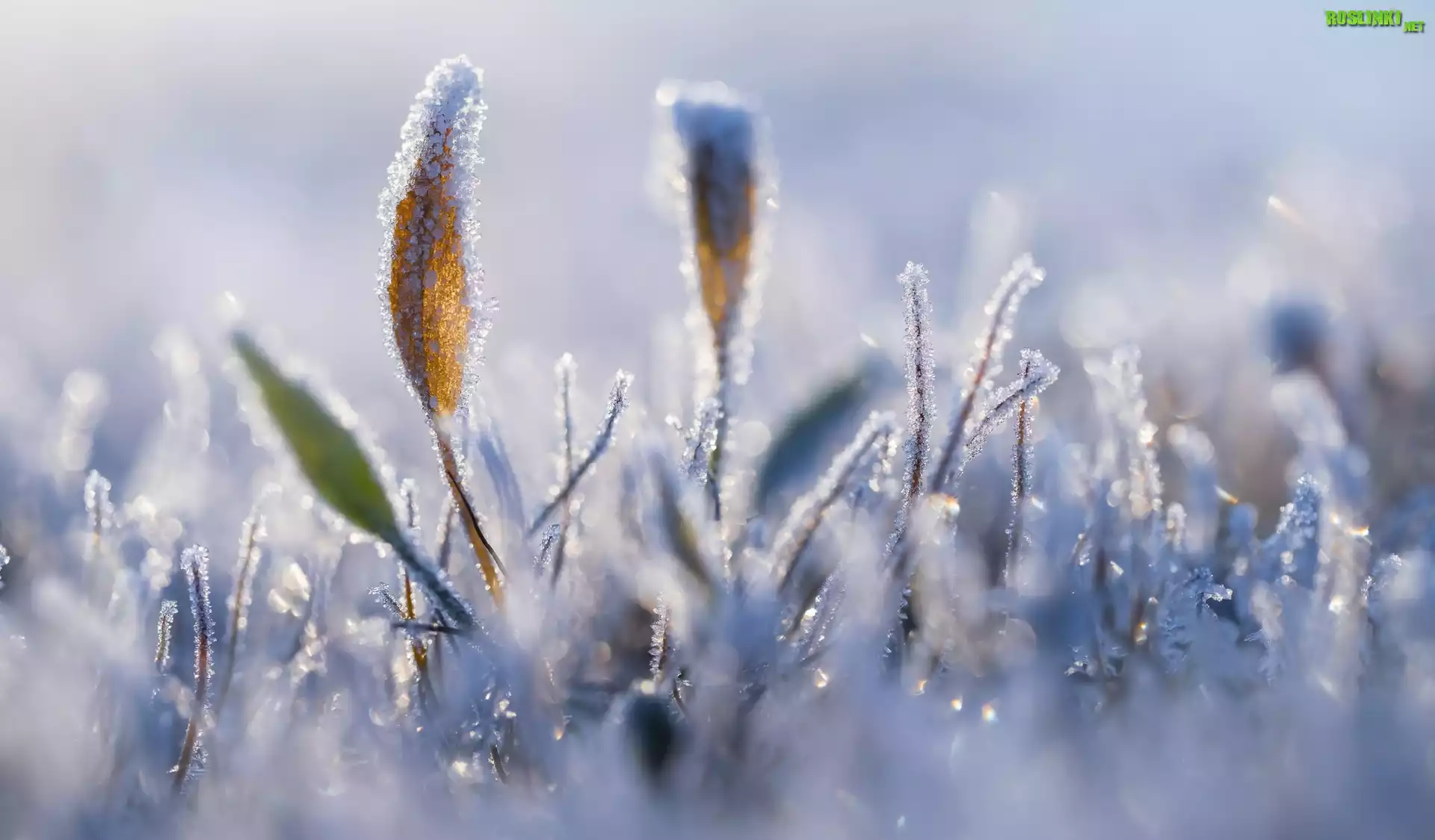 Rośliny: Trawa, Szron, Blask, Zima