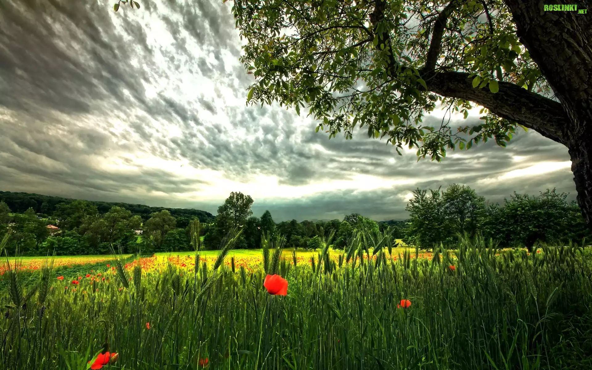 Rośliny: Chmury, Trawa, Mak