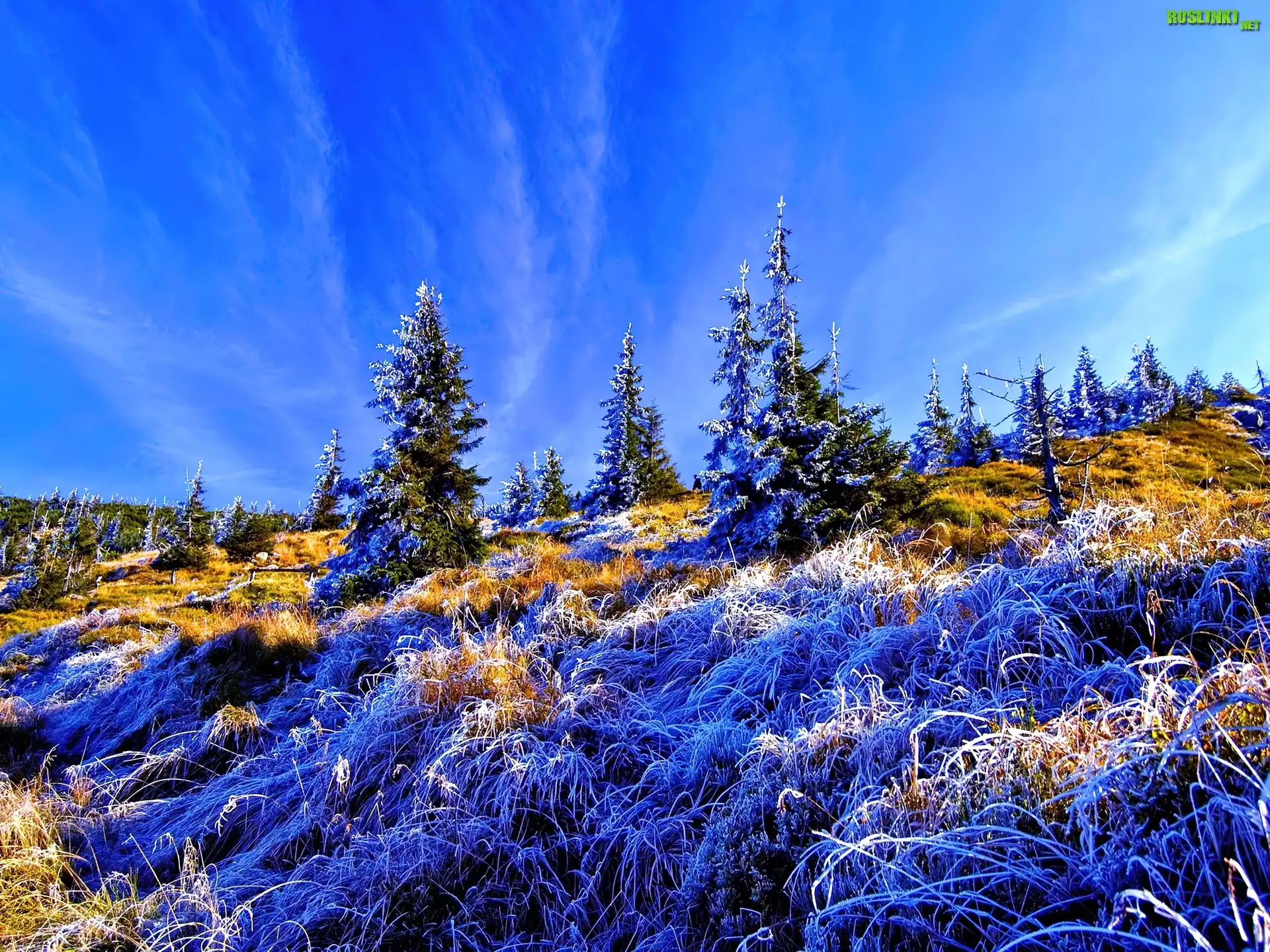 Rośliny: Choinki, Trawa, Szron