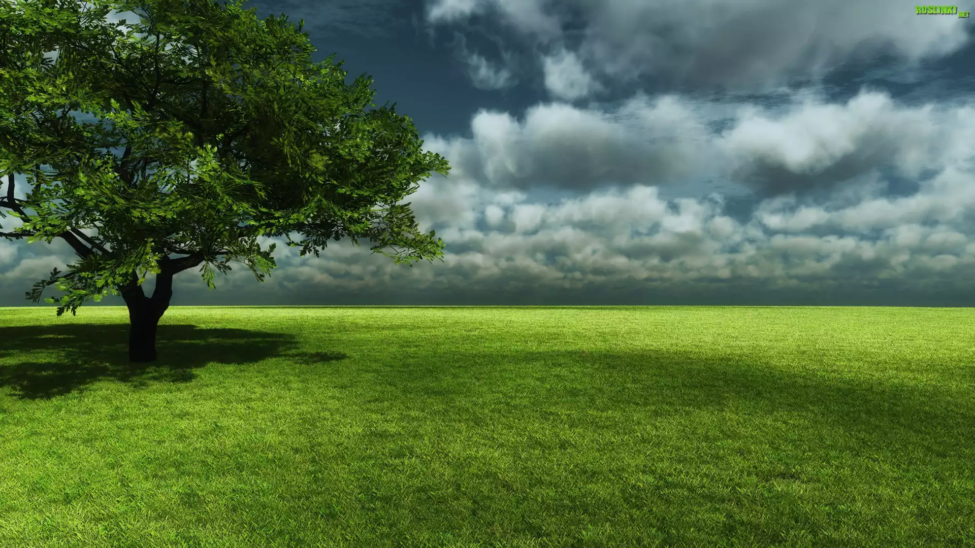 Rośliny: Drzewo, Trawa, Chmury