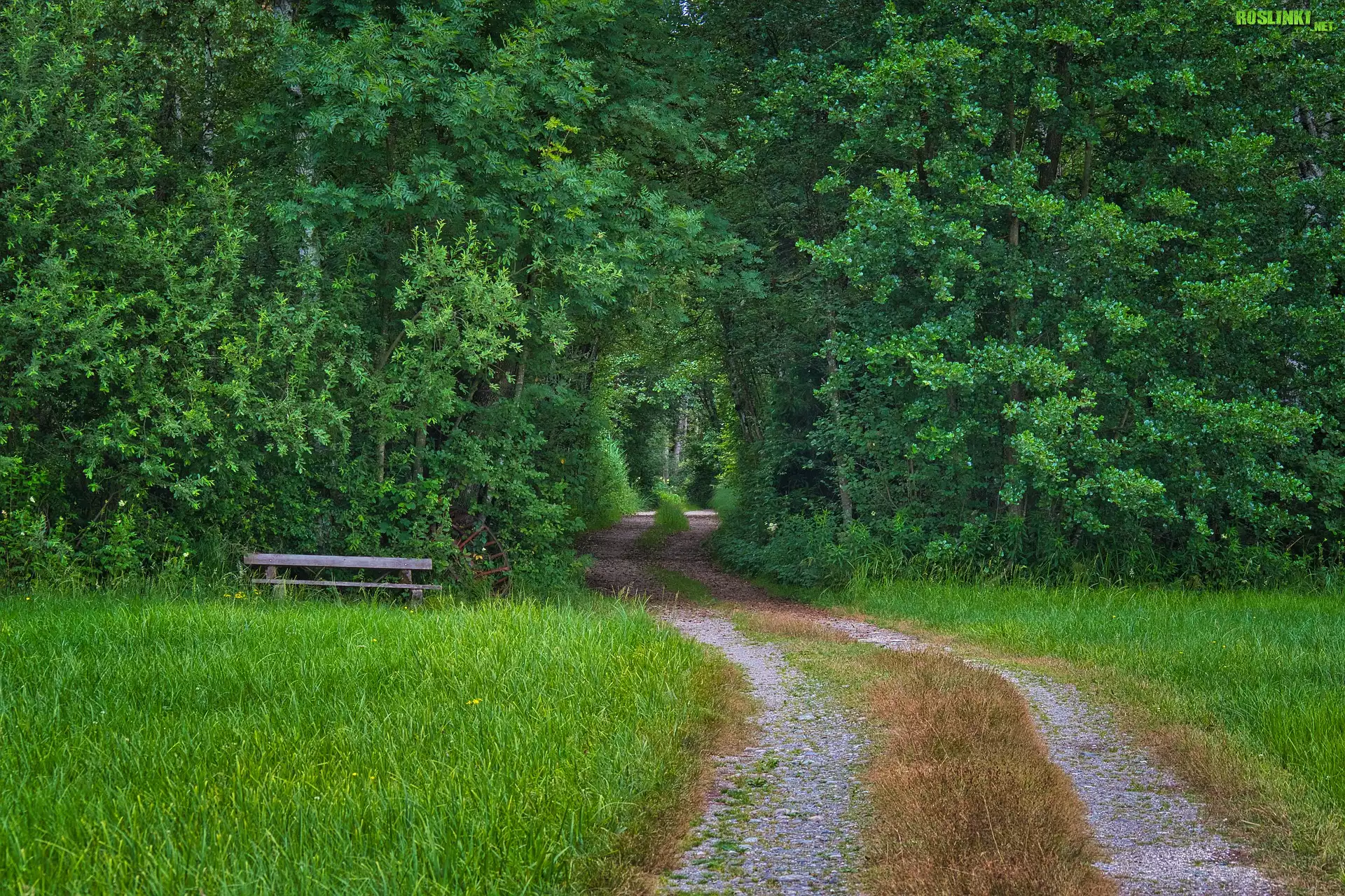 Rośliny: Ławka, Trawa, Las, Ścieżka, Drzewa