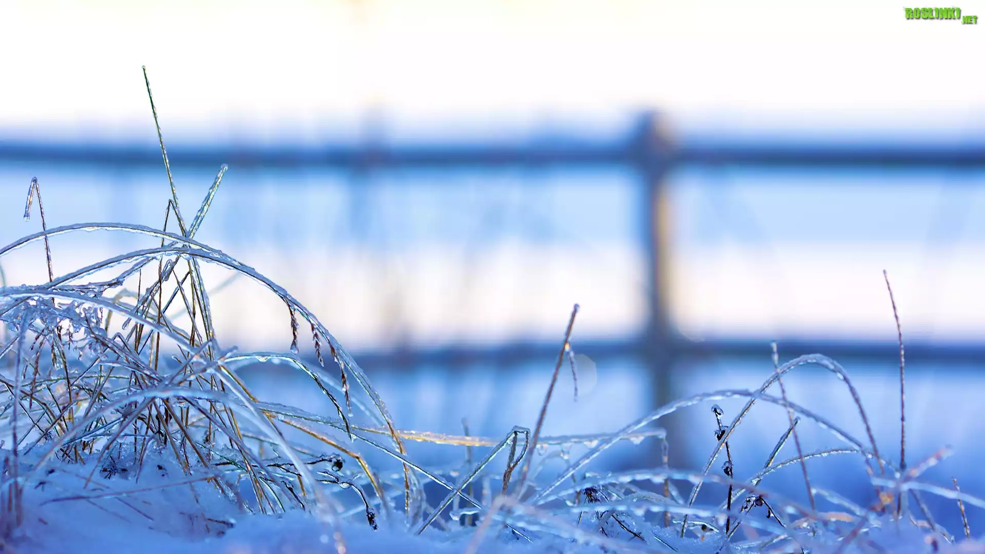 Rośliny: Trawa, Lód, Ogrodzenie, Zima