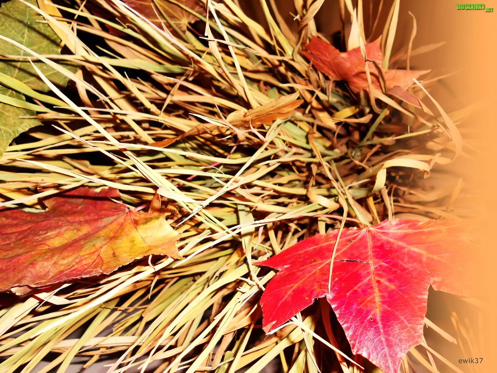 Rośliny: Trawa, Jesienne, Liscie, Pomarańczowe, Zabarwienie