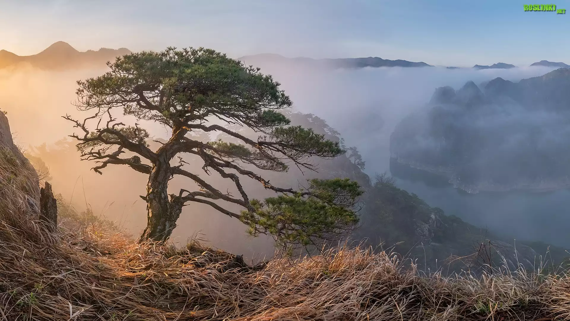 Rośliny: Góry, Skały, Mgła, Trawa, Drzewo, Sosna