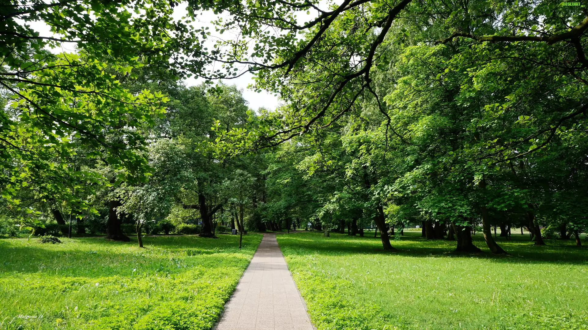 Rośliny: Polska, Gdańsk, Park Jelitkowski, Ścieżka, Droga, Drzewa, Zieleń, Trawnik