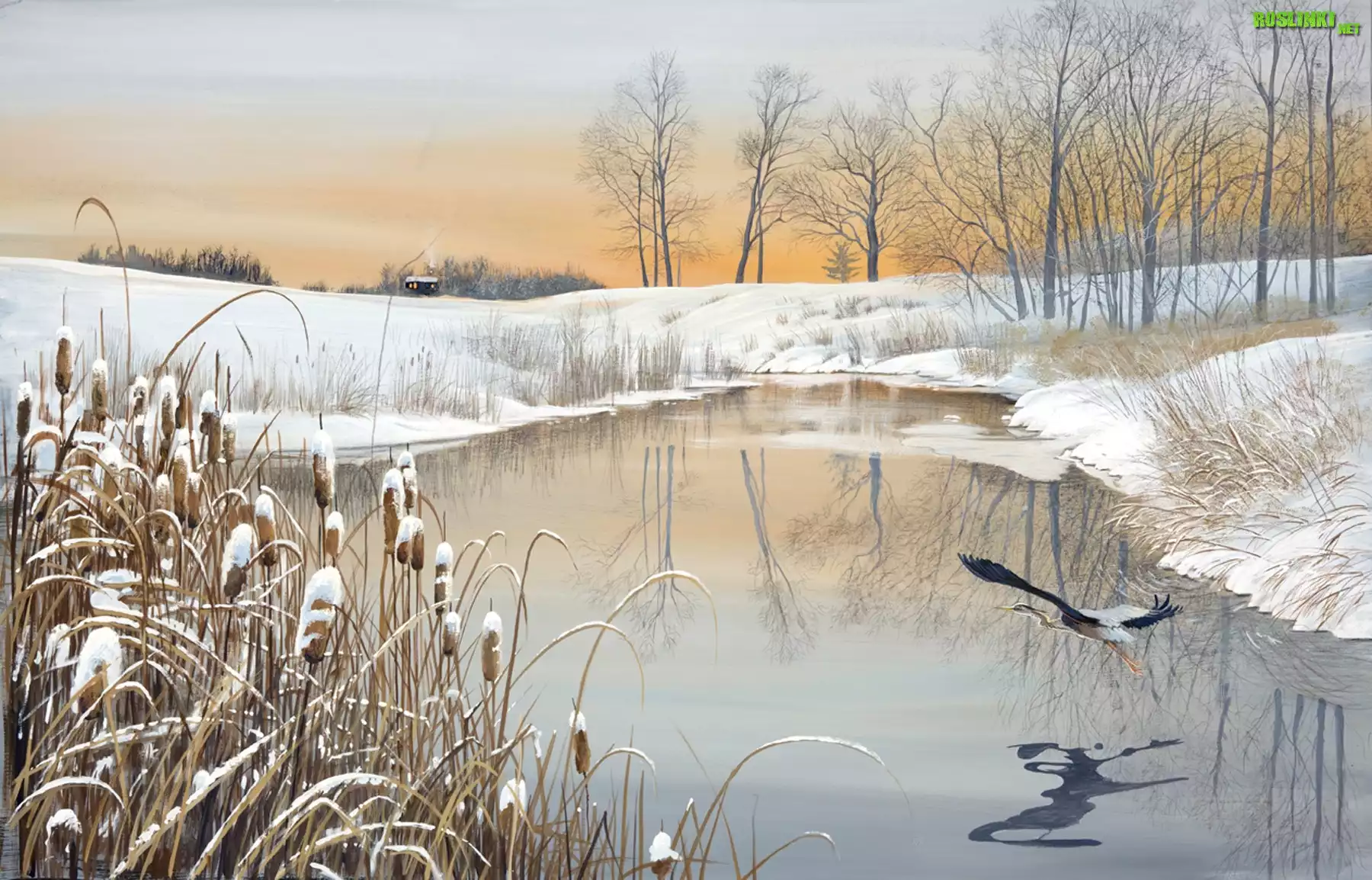 Rośliny: Rzeka, Trawy, Bocian
