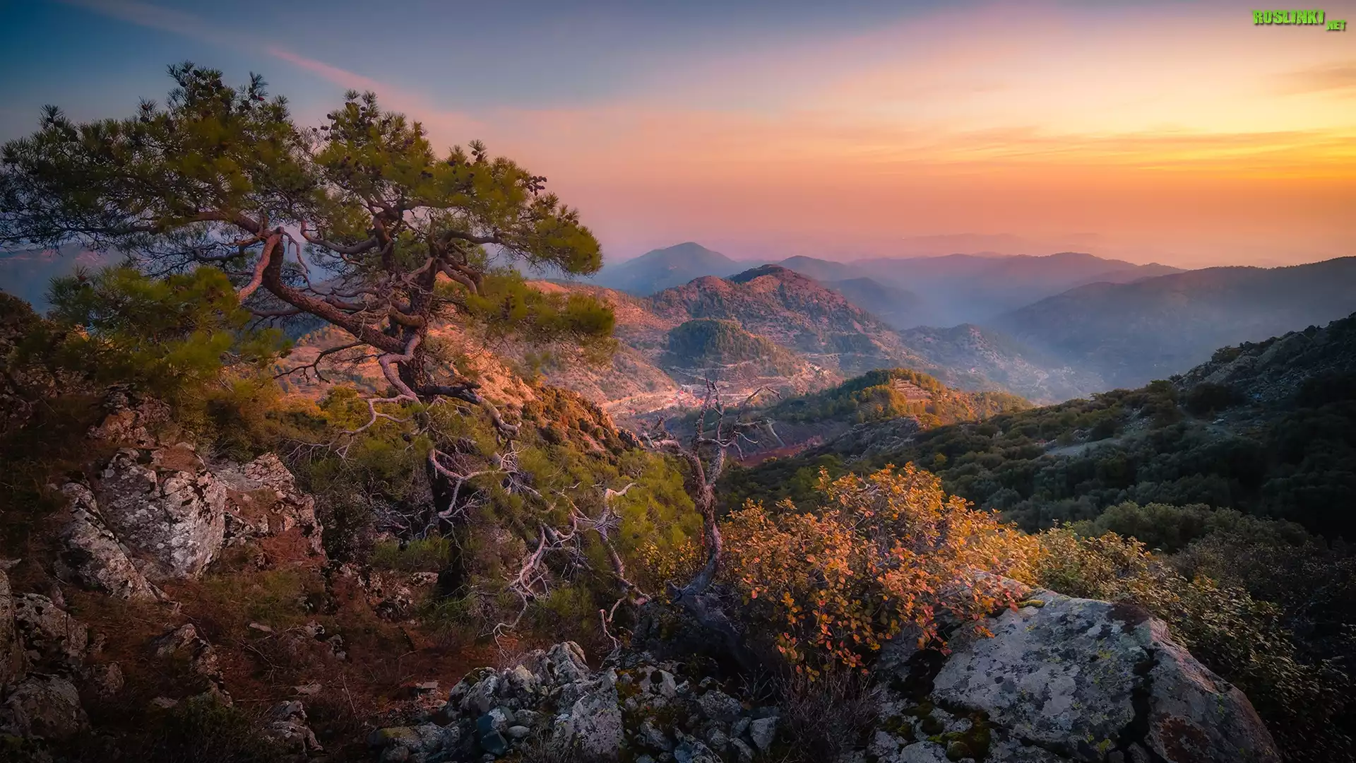 Rośliny: Góry Troodos, Kamienie, Sosna, Zachód słońca, Cypr