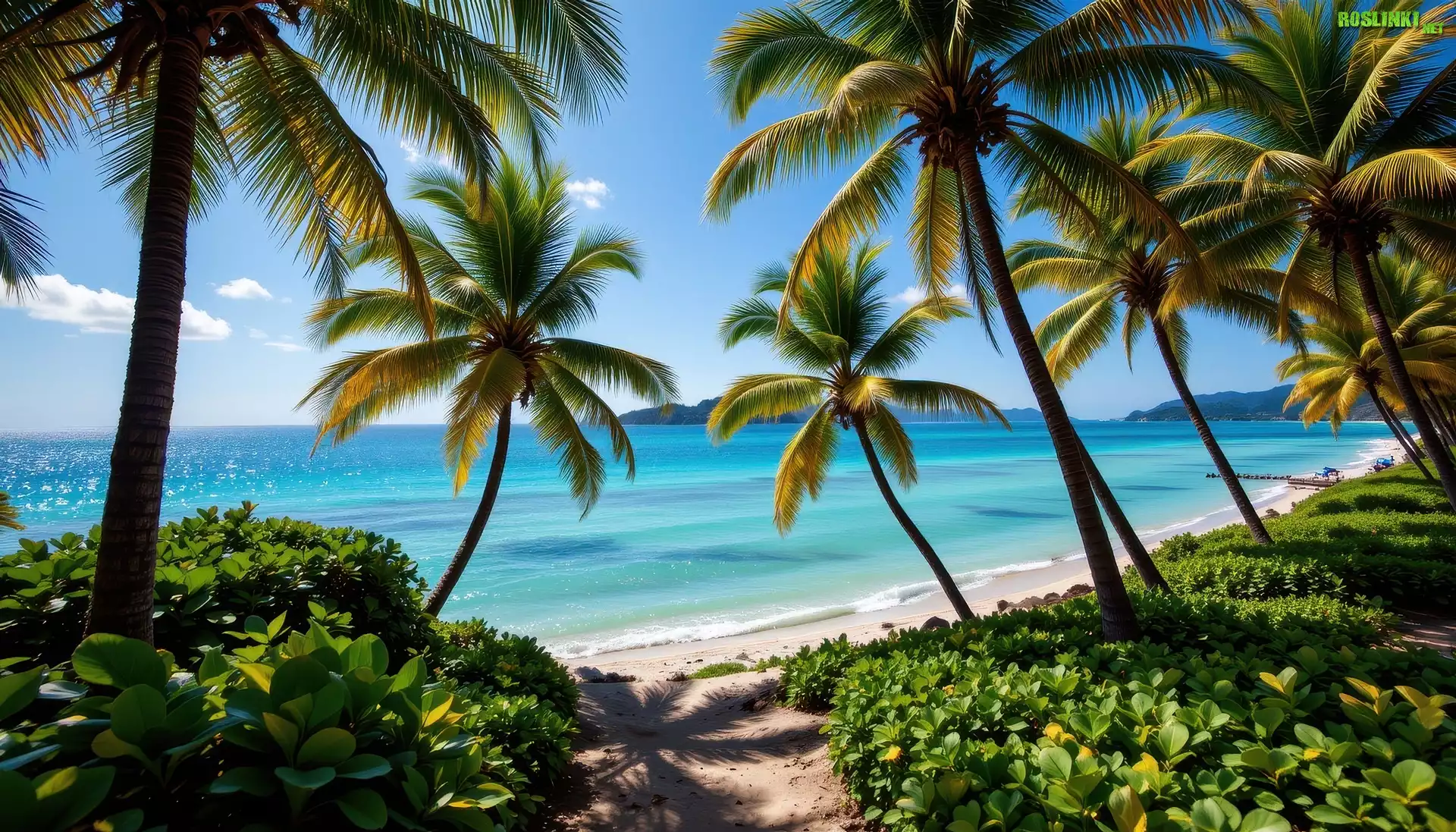 Rośliny: Palmy, Rośliny, Morze, Tropiki, Grafika AI