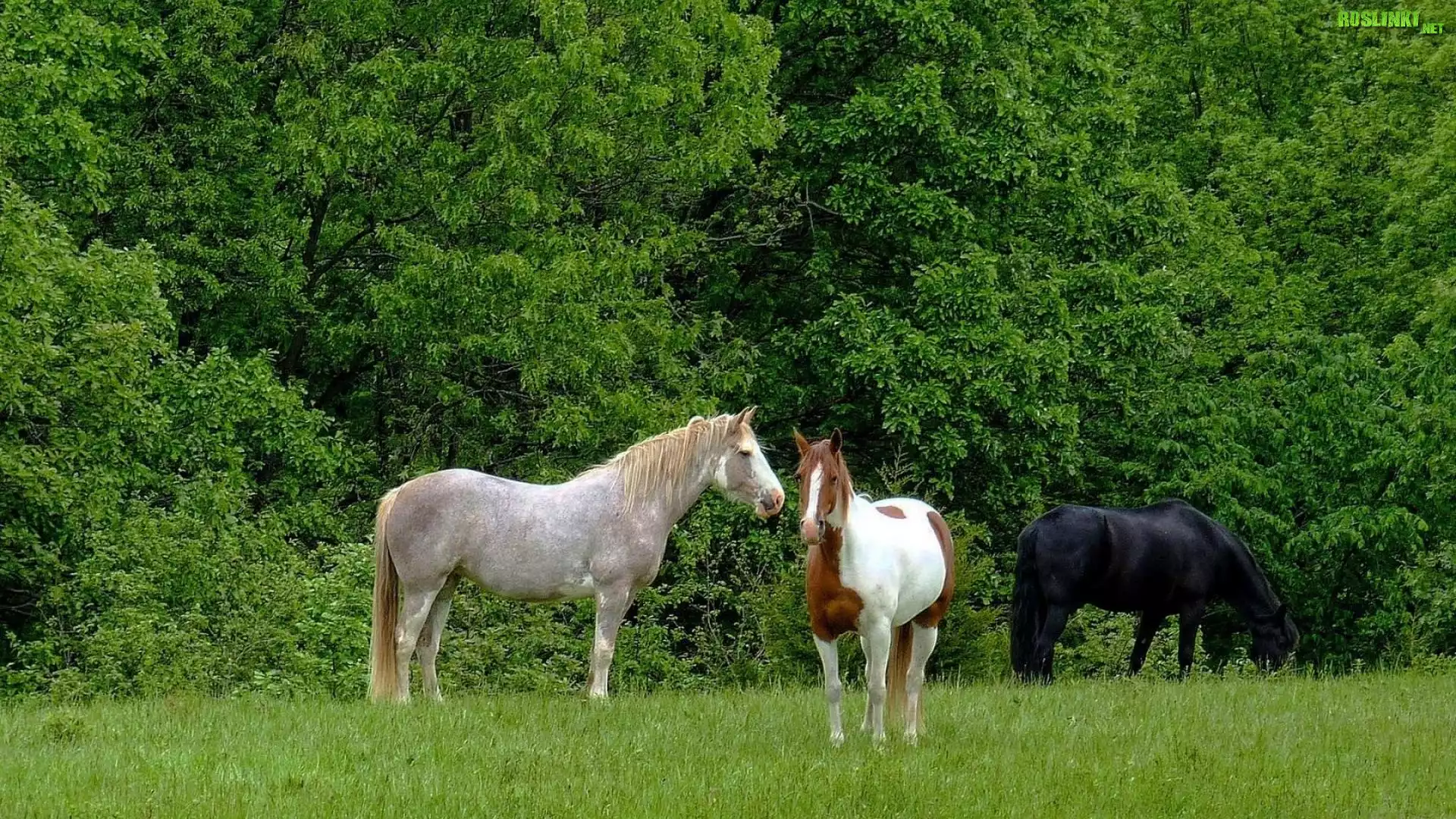 Rośliny: Trzy, Konie, Łąka, Drzewa