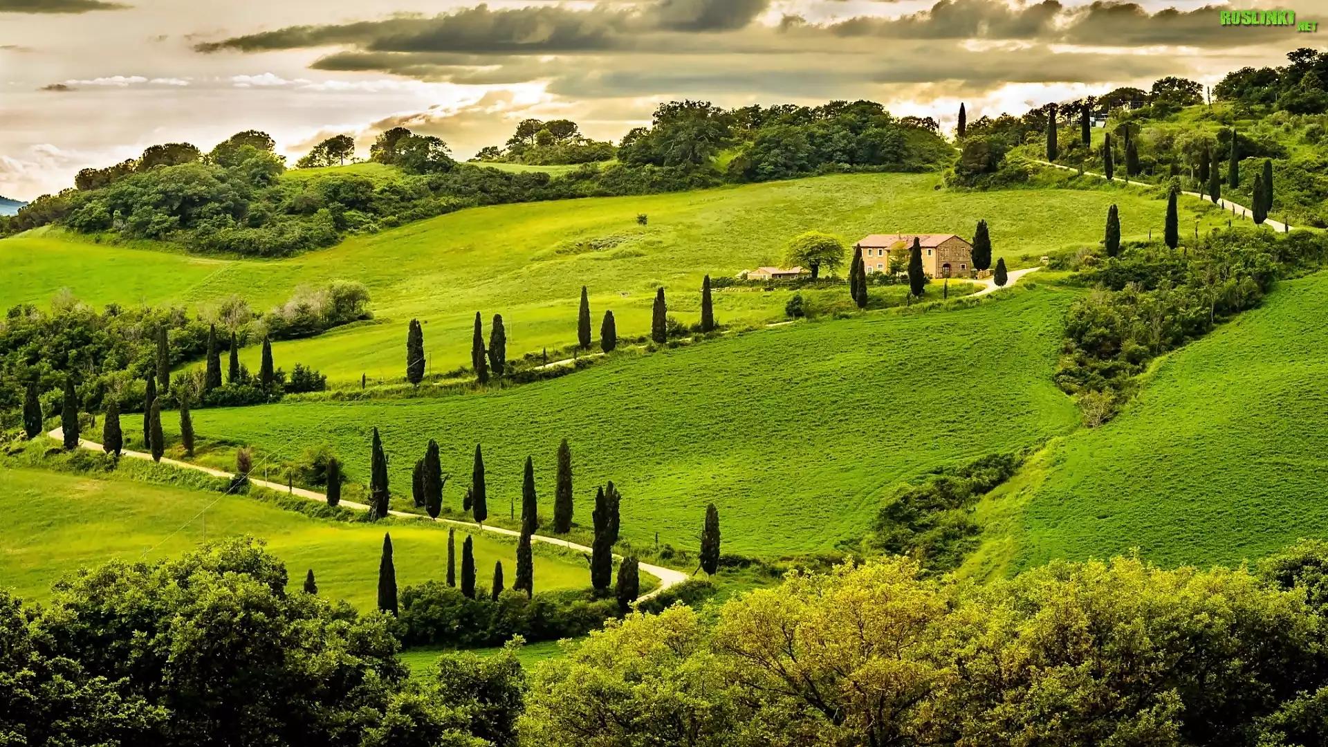 Rośliny: Umbria, Wzgórza, Dom, Pola, Droga, Drzewa
