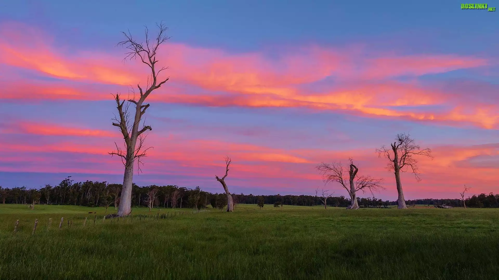 Rośliny: Uschnięte, Drzewa, Zachód, Słońca, Trawa