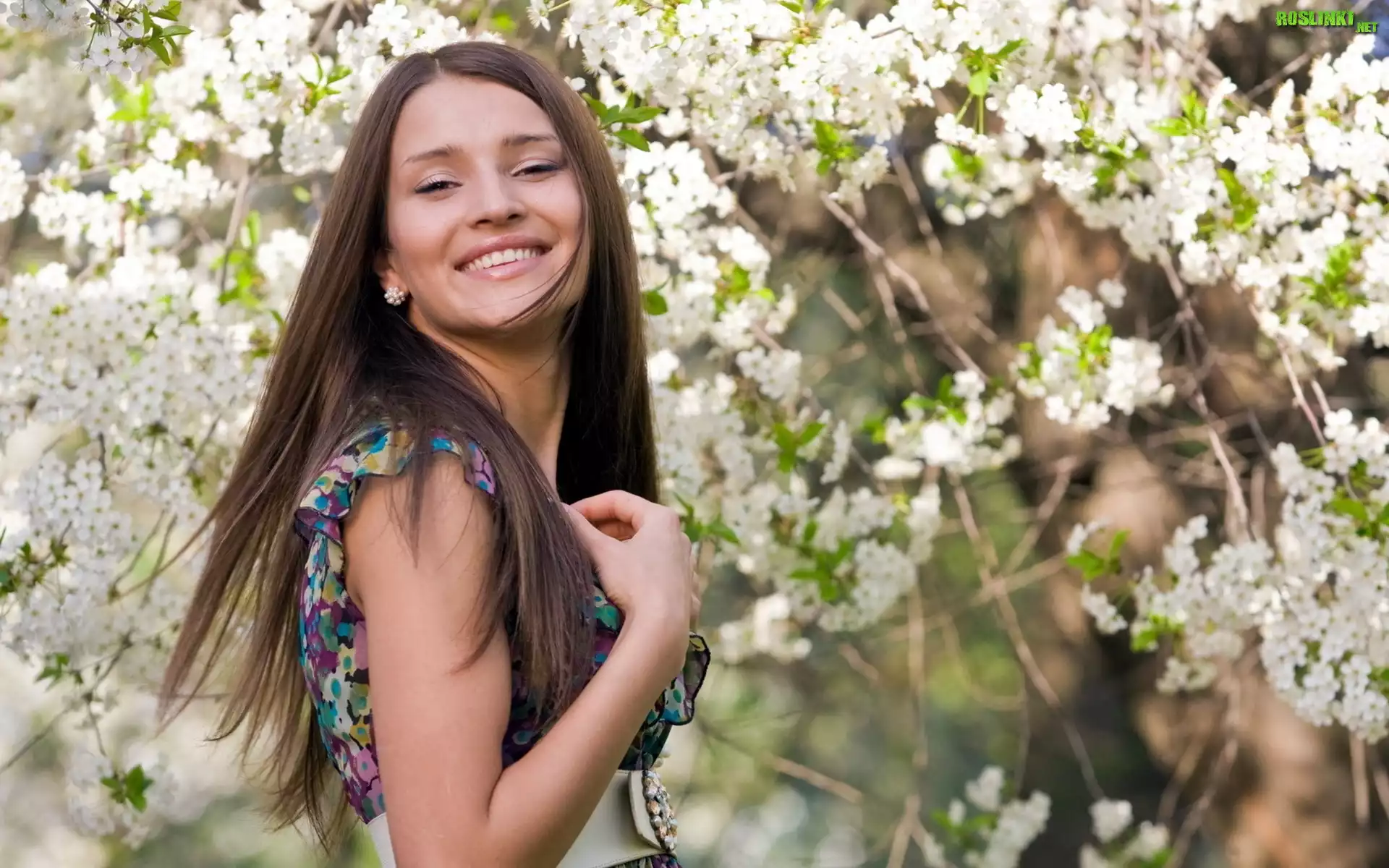 Rośliny: Uśmiechnięta, Kobieta, Kwitnące, Drzewo