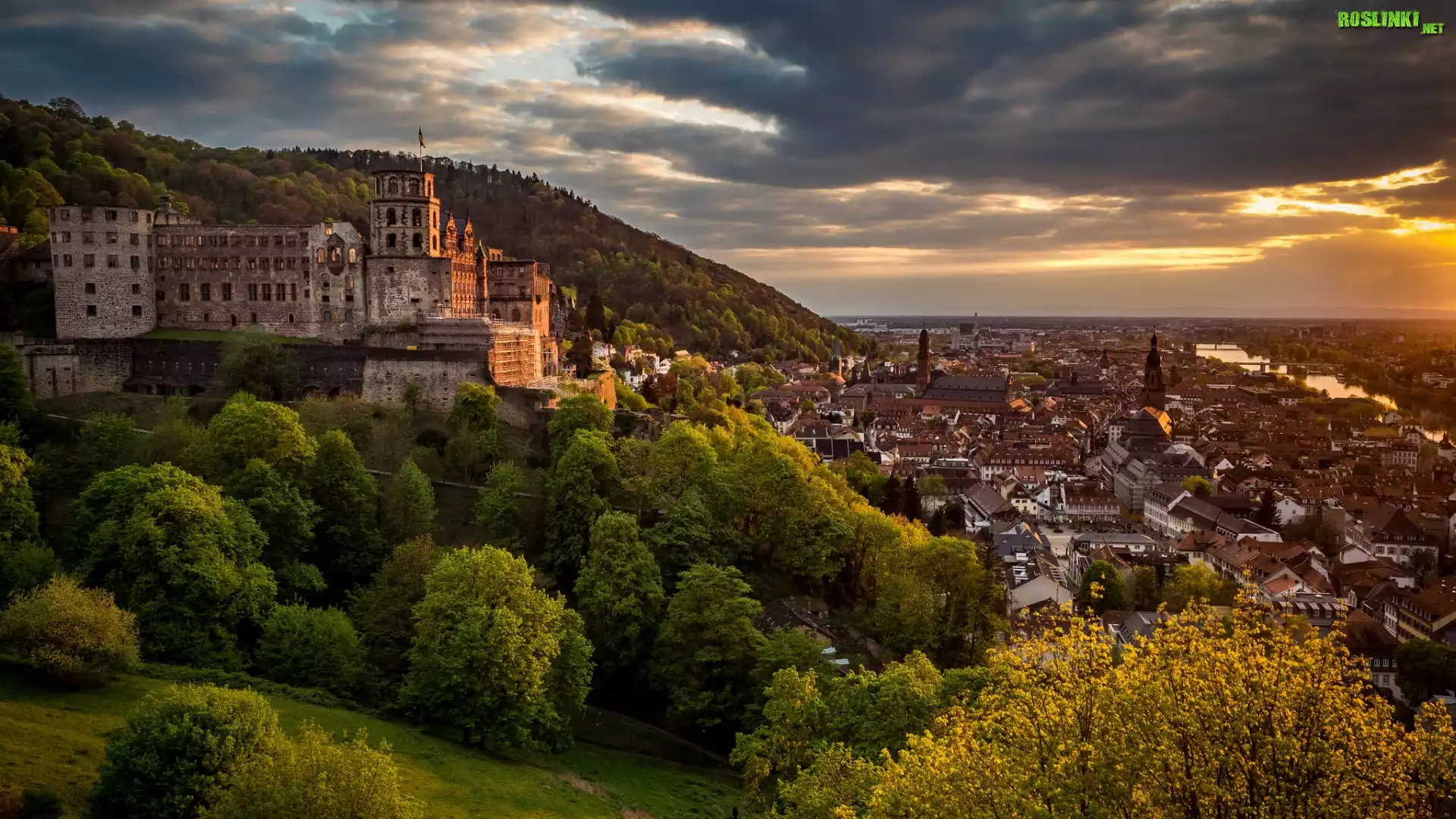 Rośliny: Zamek w Heidelbergu, Drzewa, Rzeka Neckar, Heidelberg, Niemcy