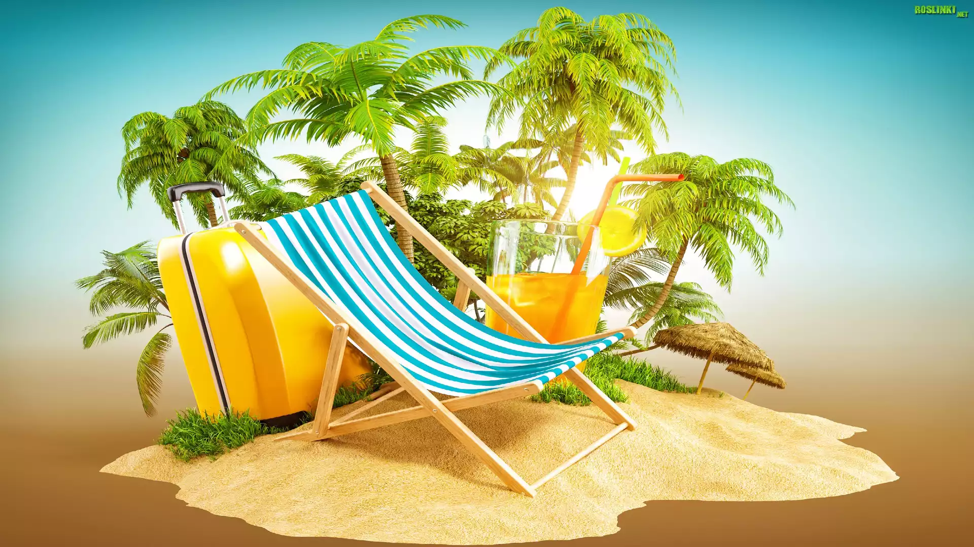 Rośliny: Leżak, Walizki, Sok, Palmy, Wakacje, Grafika 2D