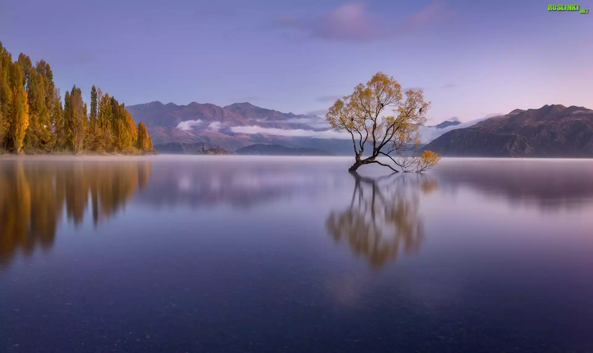 Rośliny: Jezioro Wanaka, Drzewo, Góry, Jesień, Odbicie, Nowa Zelandia