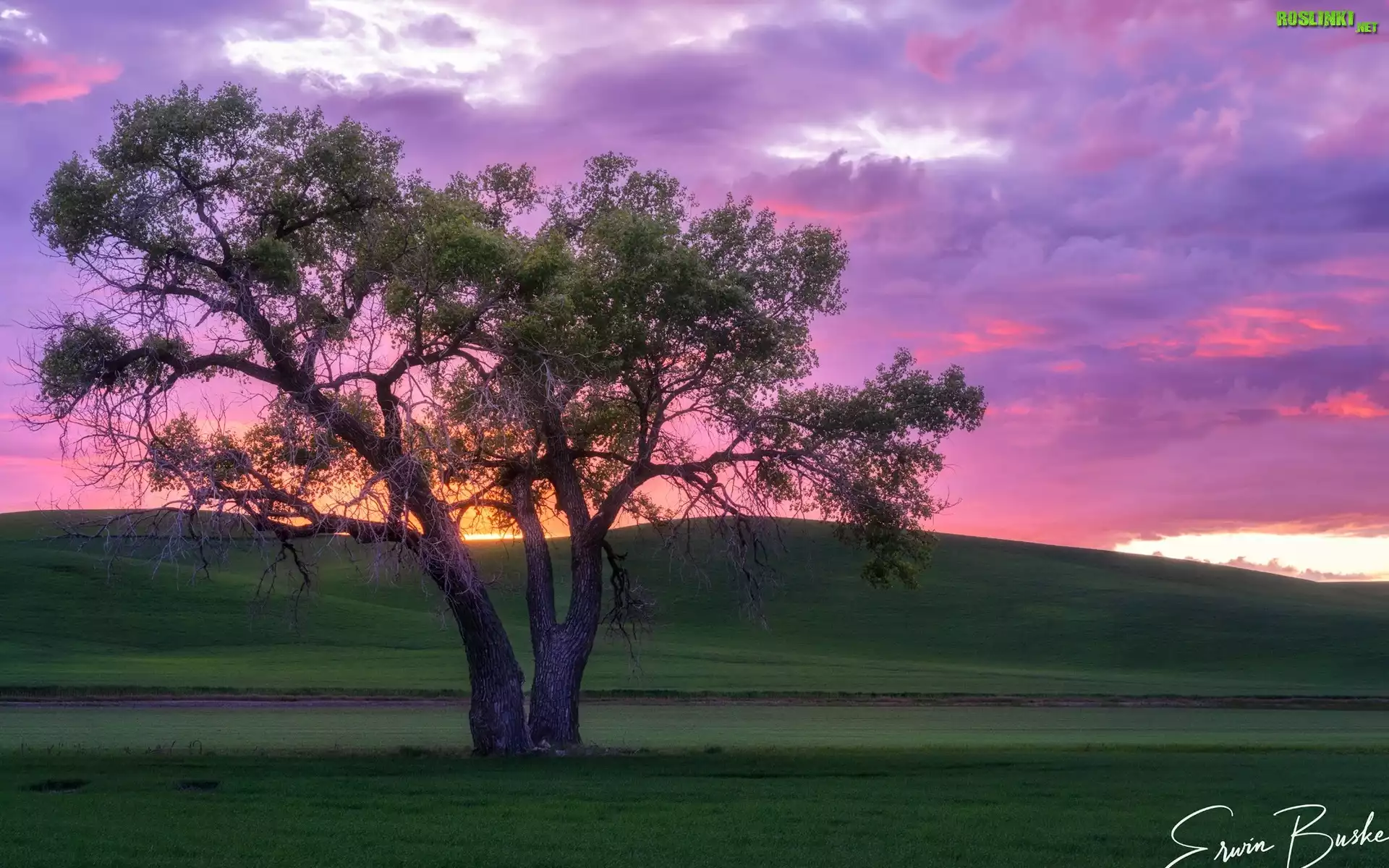 Rośliny: Wzgórza, Drzewo, Pola, Kolorowe, Niebo, Chmury, Region Palouse, Stan Waszyngton, Stany Zjednoczone