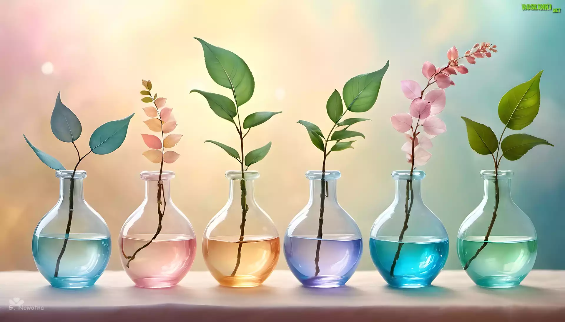 Rośliny: Kolorowe, Wazoniki, Gałązki, Liście, Grafika