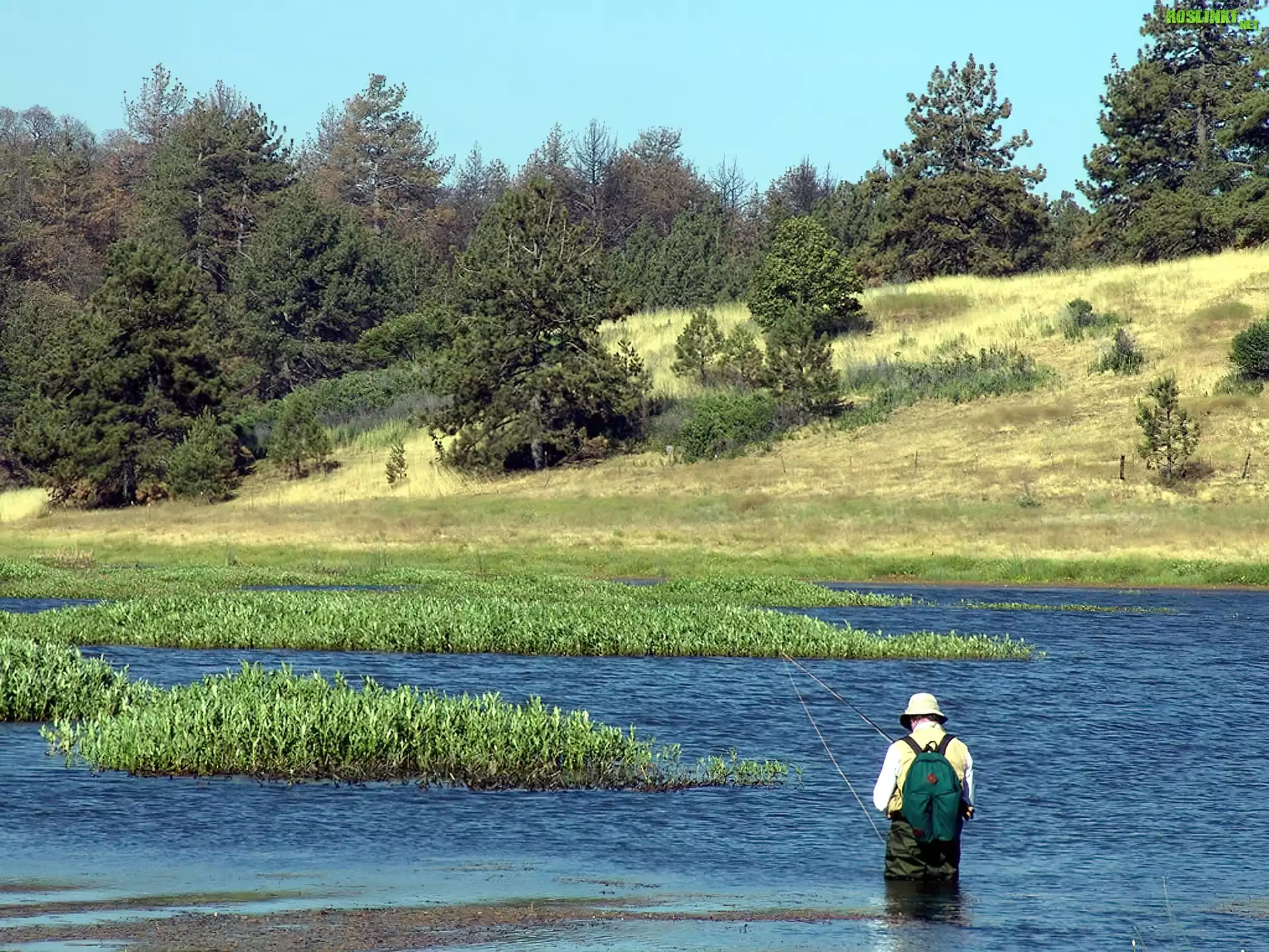 Rośliny: Rzeka, Wędkarz, Drzewa