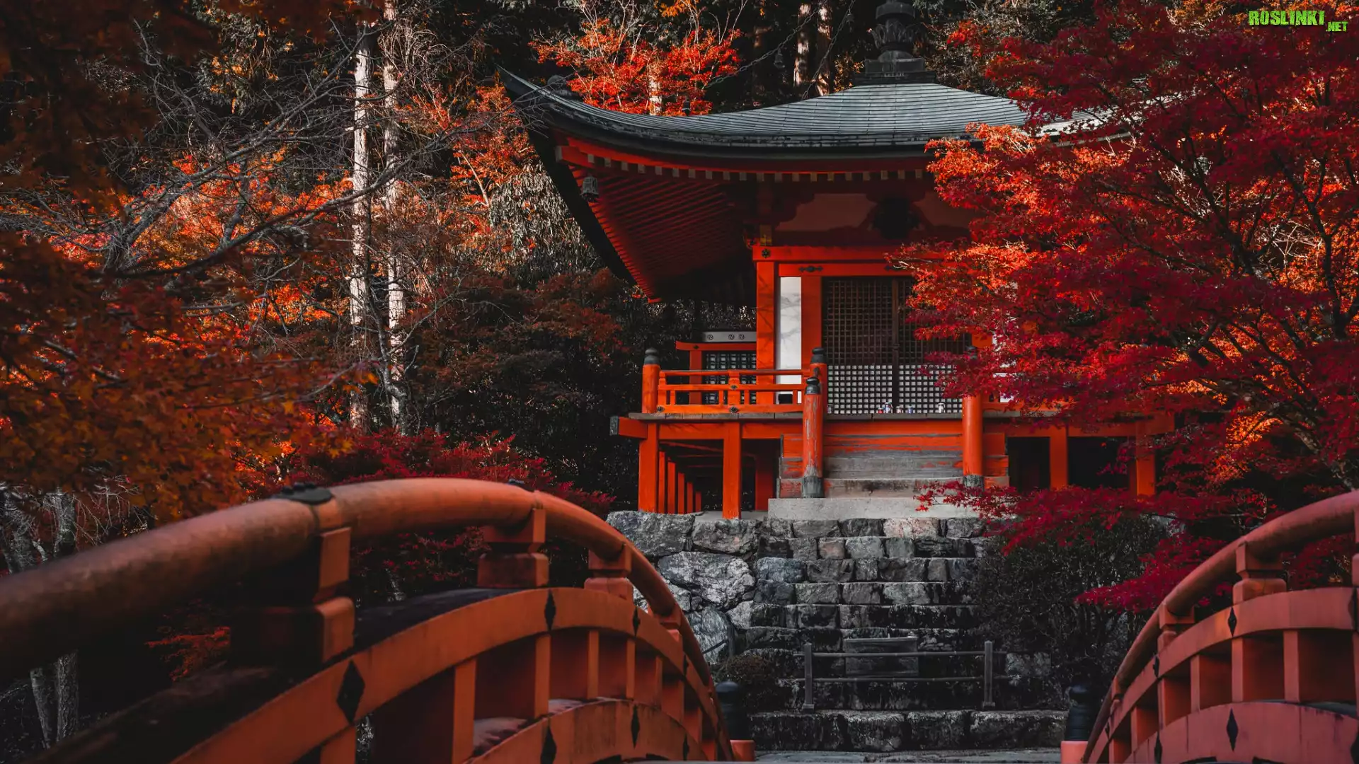 Rośliny: Japonia, Kioto, Świątynia, Bentendo Temple, Kompleks Daigo-ji, Jesień, Drzewa, Mostek