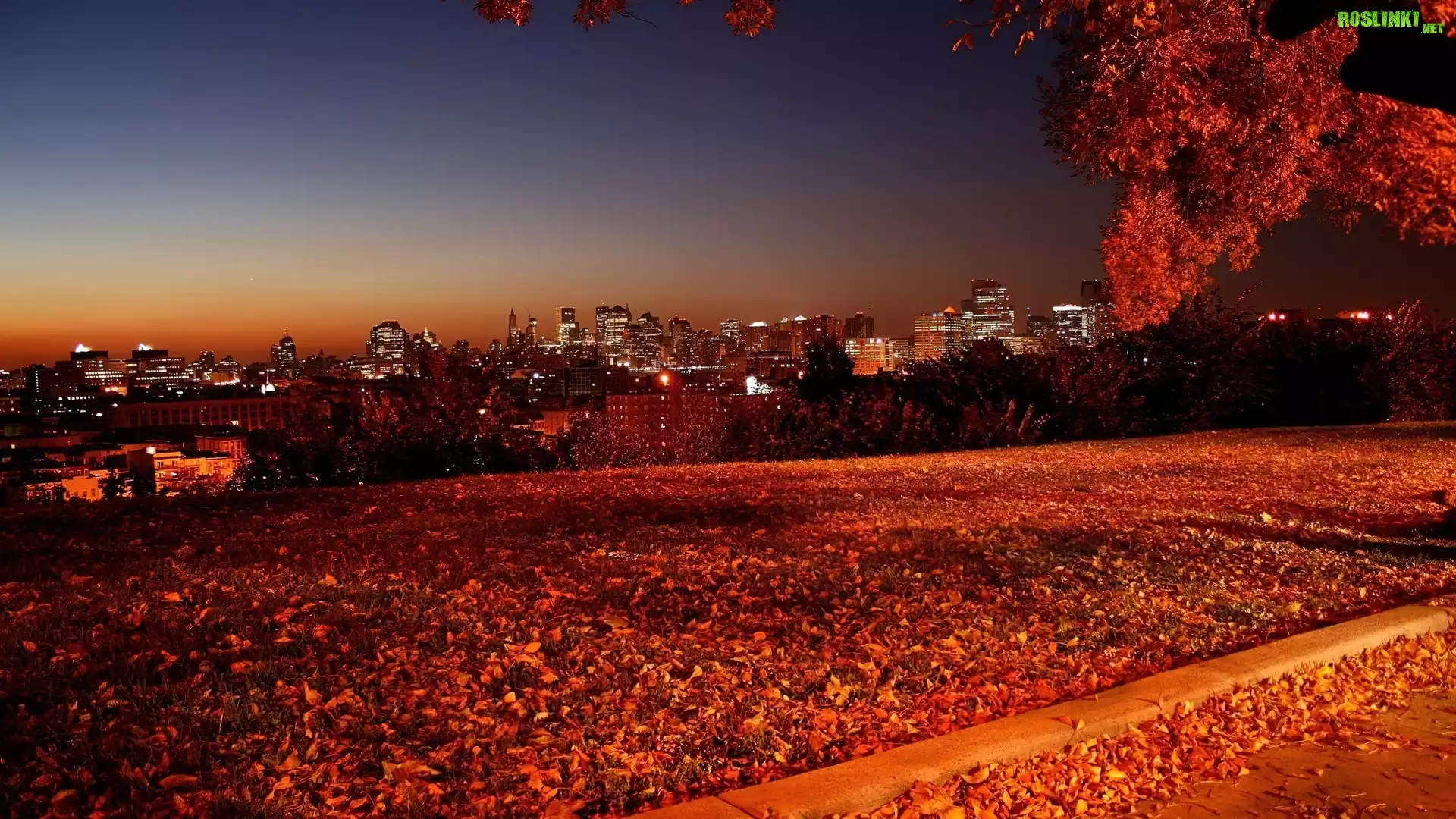 Rośliny: Widok, Na, Miasto, Wieczór, Jesień, Liście