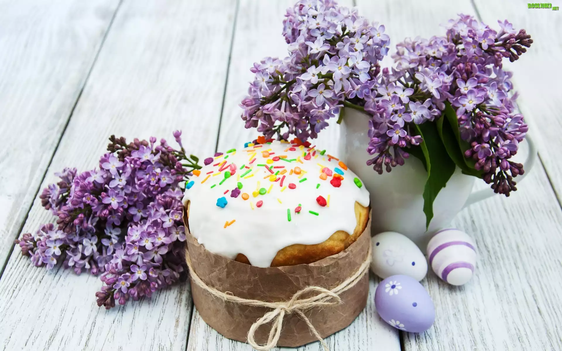 Rośliny: Kompozycja, Wielkanoc, Fioletowy, Bez, Pisanki, Babka, Ciasto