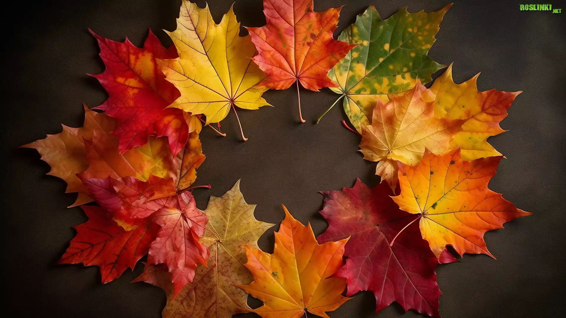 Rozświetlone, Wielobarwne, Liście, Ciemne tło