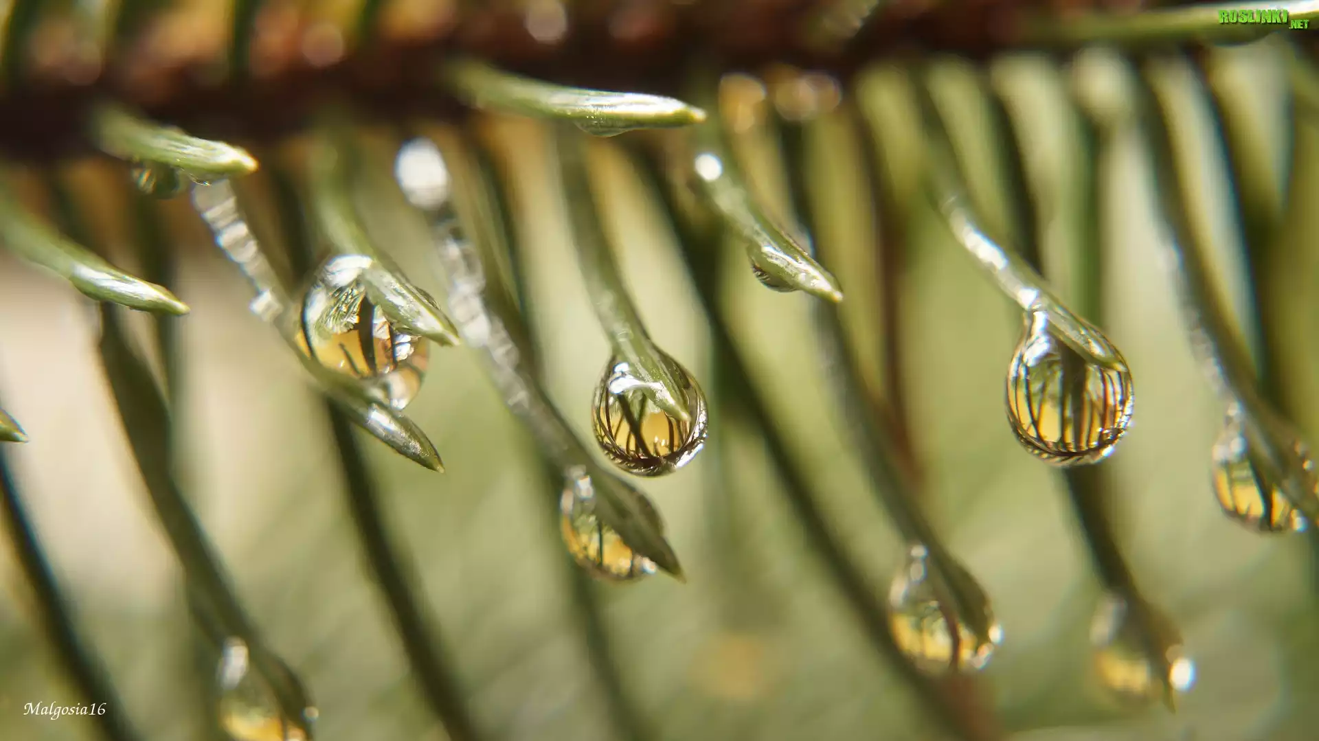Rośliny: Świerk, Gałązka, Igły, Kropelki, Wody, Makro