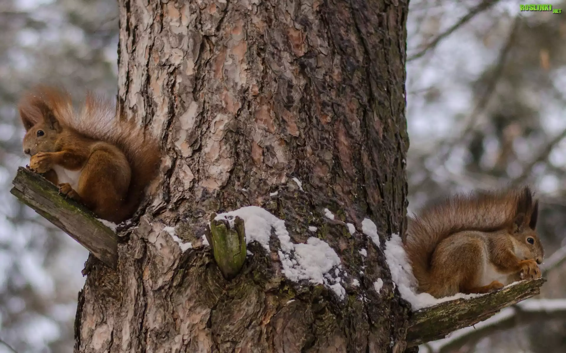 Rośliny: Wiewiórki, Drzewo, Las, Zima