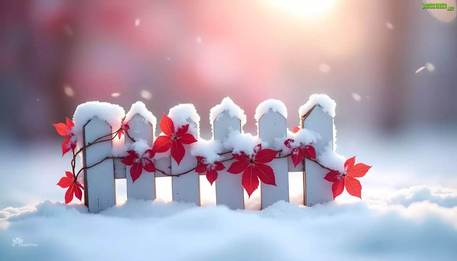 Rośliny: Biały, Płotek, Czerwona, Winorośl, Liście, Śnieg, Zima