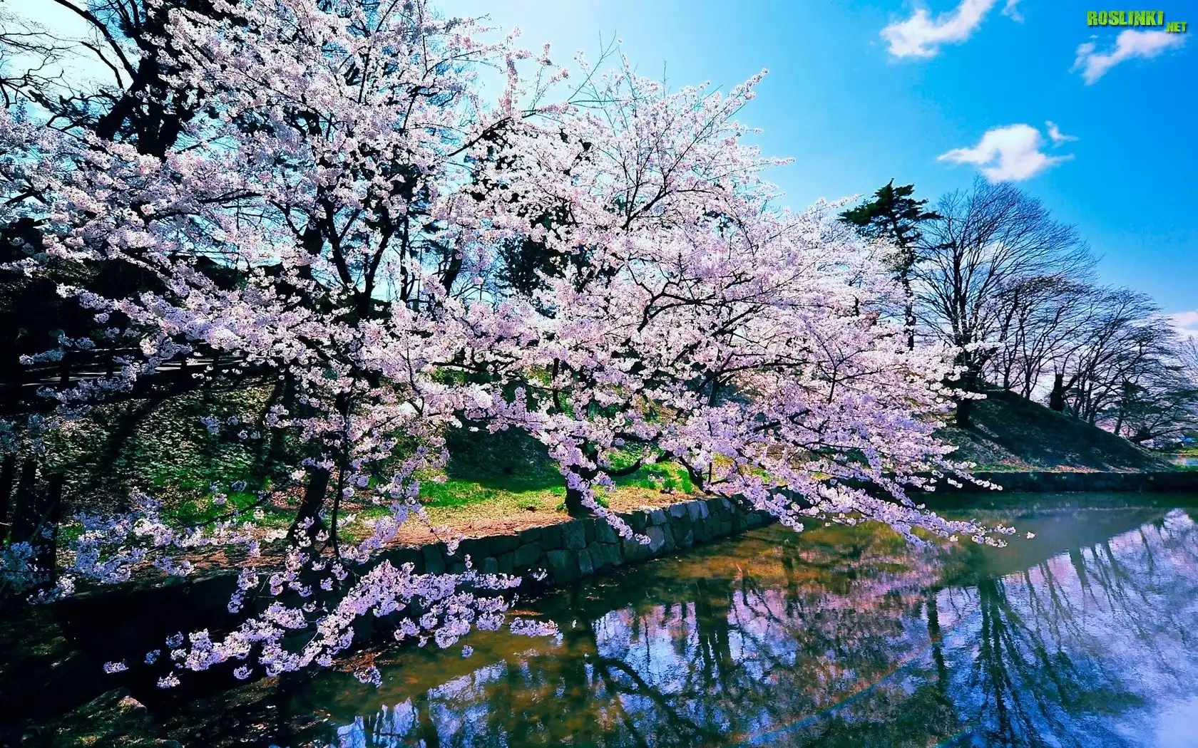 Rośliny: Wiosna, Kwitnące, Drzewo, Staw