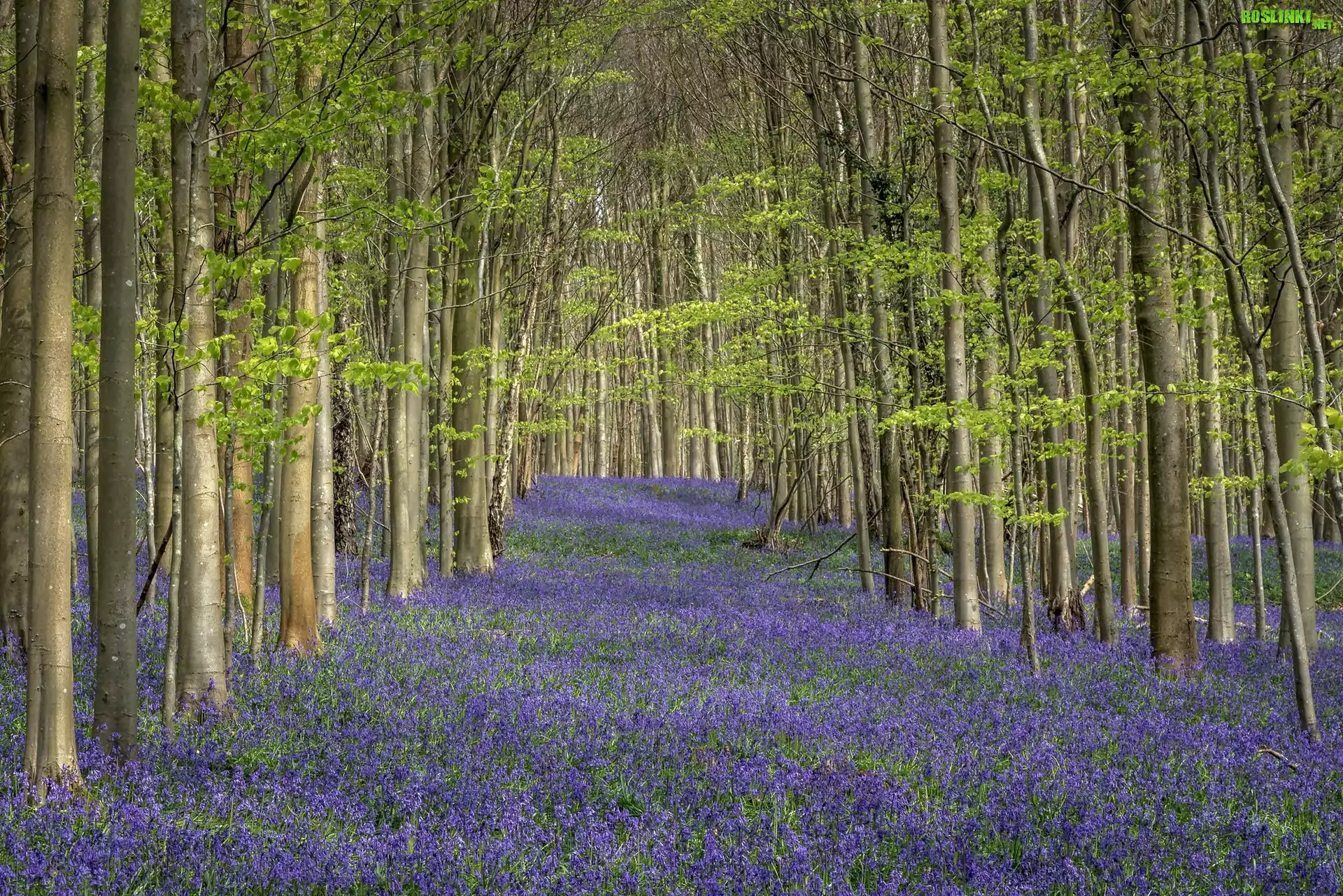 Rośliny: Wiosna, Las, Drzewa, Niebieskie, Kwiaty