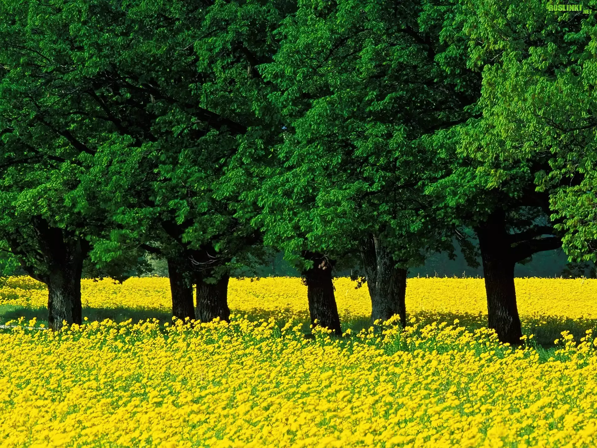 Rośliny: Wiosna, Zielone, Drzewa, Żółta, Łąka