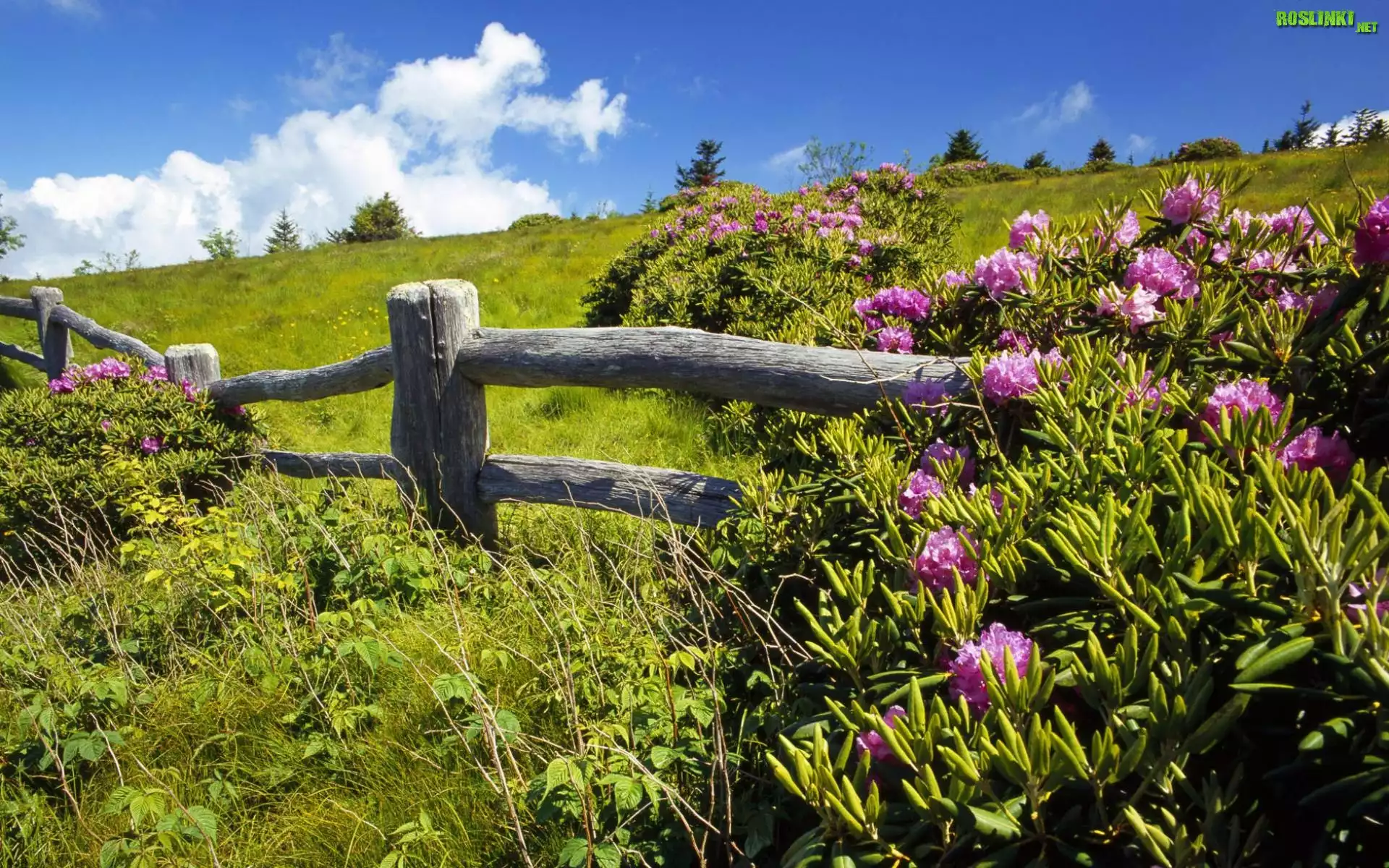 Rośliny: Wiosna, Łąka, Płotek, Krzewy, Różowych, Rododendronów