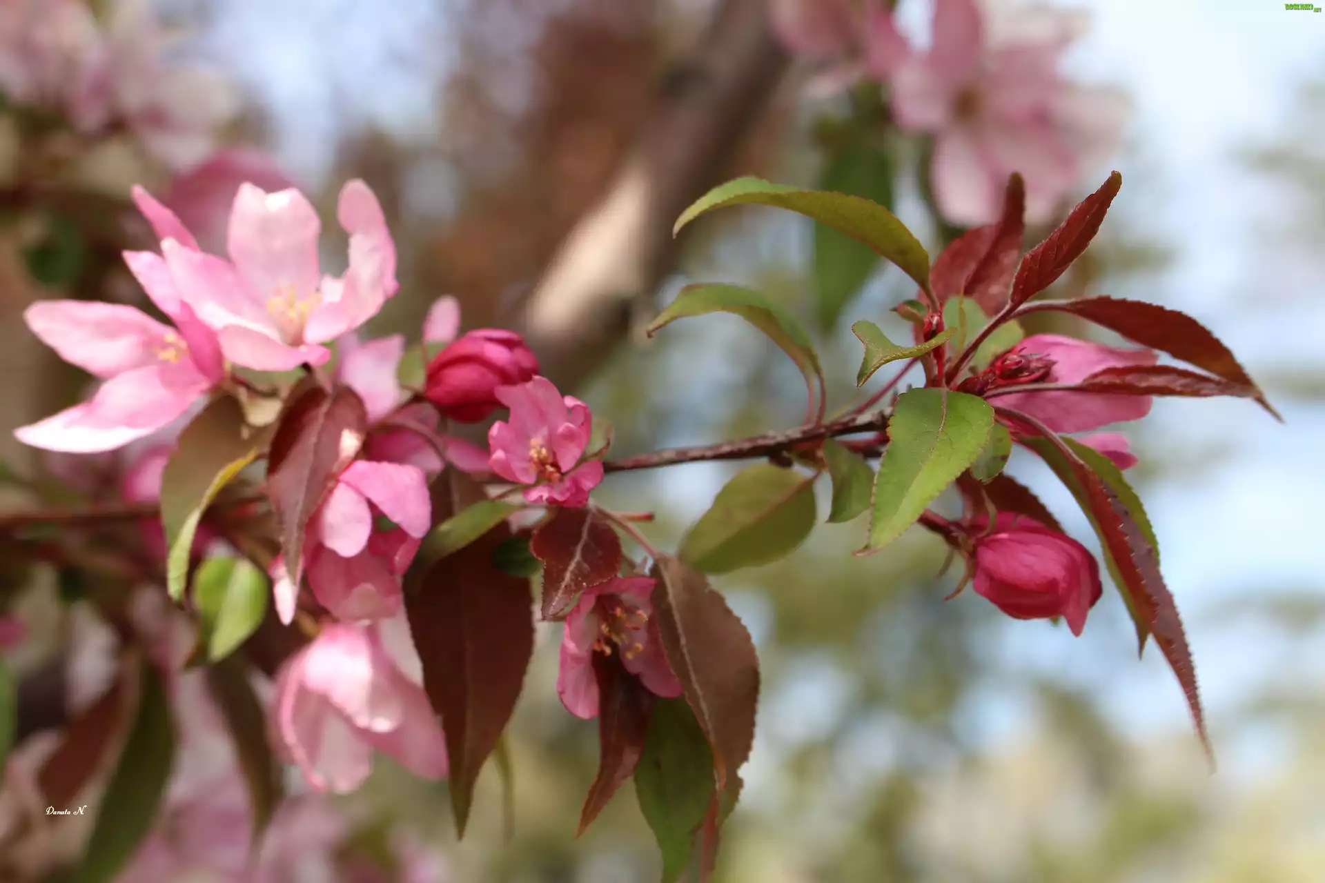 Rośliny: Wiśnia, Japońska, Kwiaty, Gałązka, Wiosna