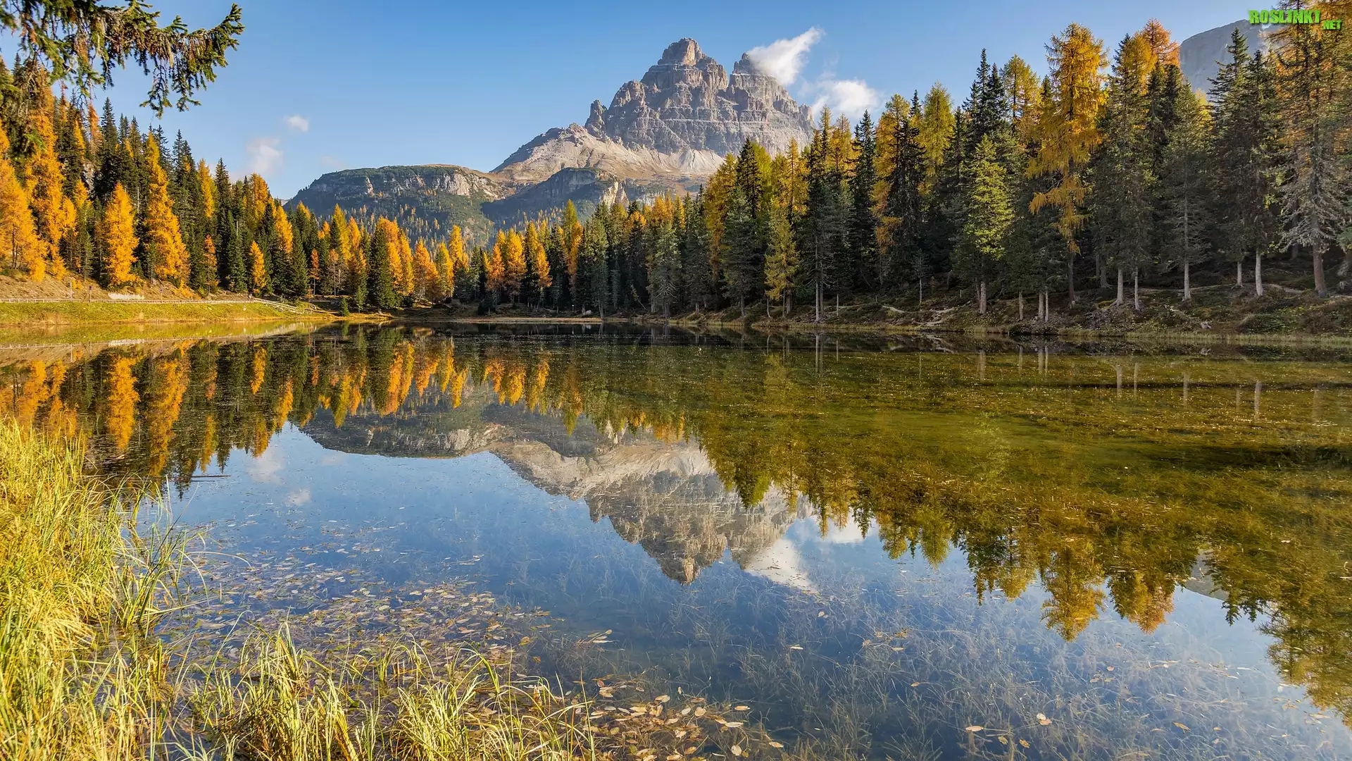 Rośliny: Włochy, Dolomity, Jezioro, Lago di Antorno, Góry, Las, Drzewa, Trawa