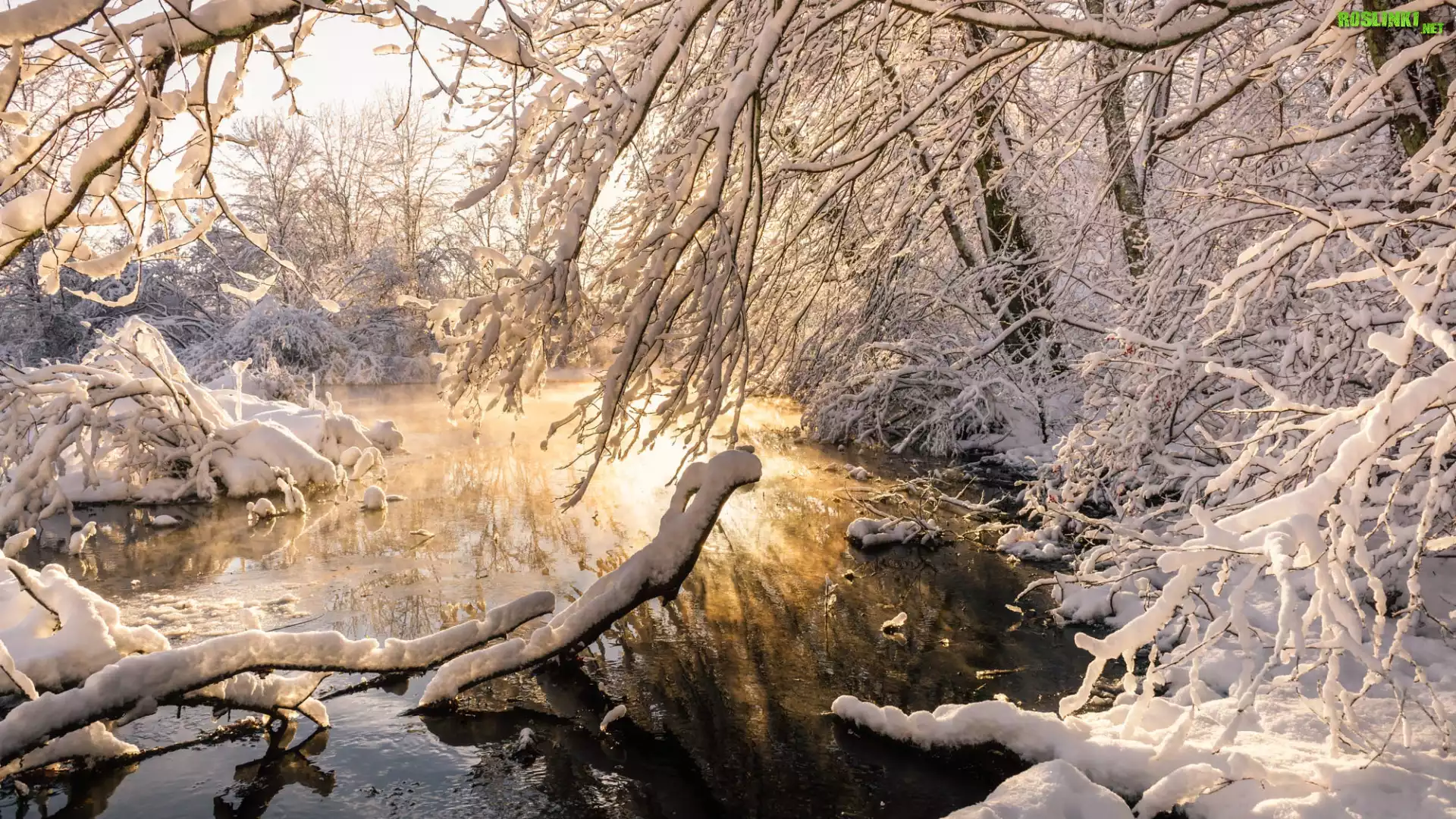 Rośliny: Zima, Drzewa, Gałęzie, Woda, Słoneczny, Blask