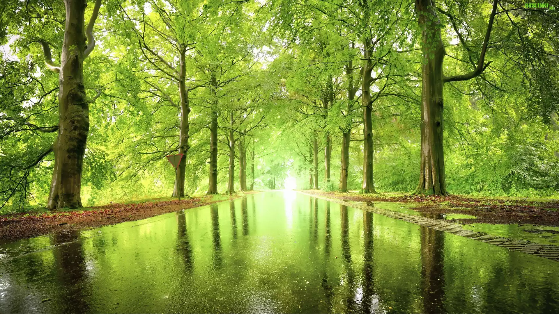 Rośliny: Aleja, Drzewa, Światło, Woda, Droga, Mokro