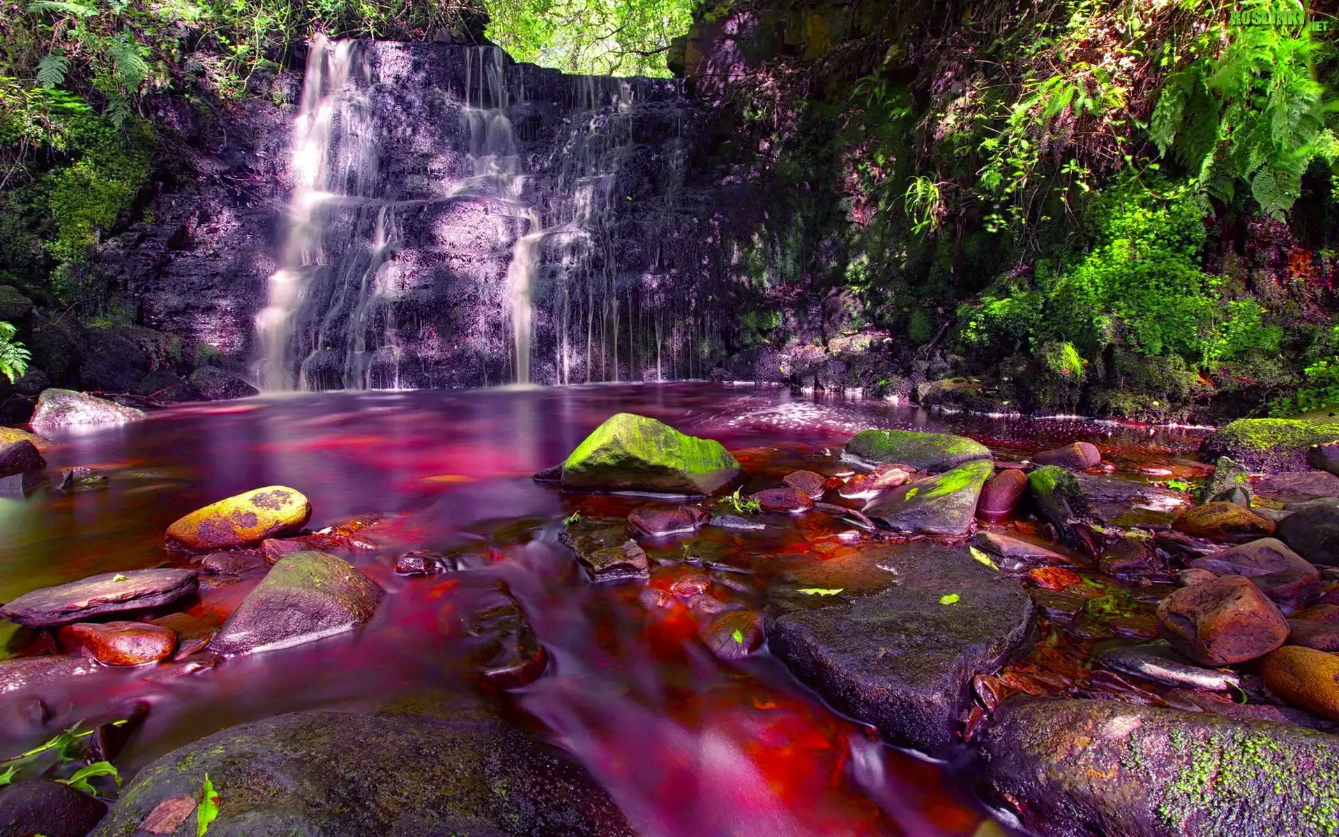 Rośliny: Wodospad, W, Lesie, Czerwona, Woda