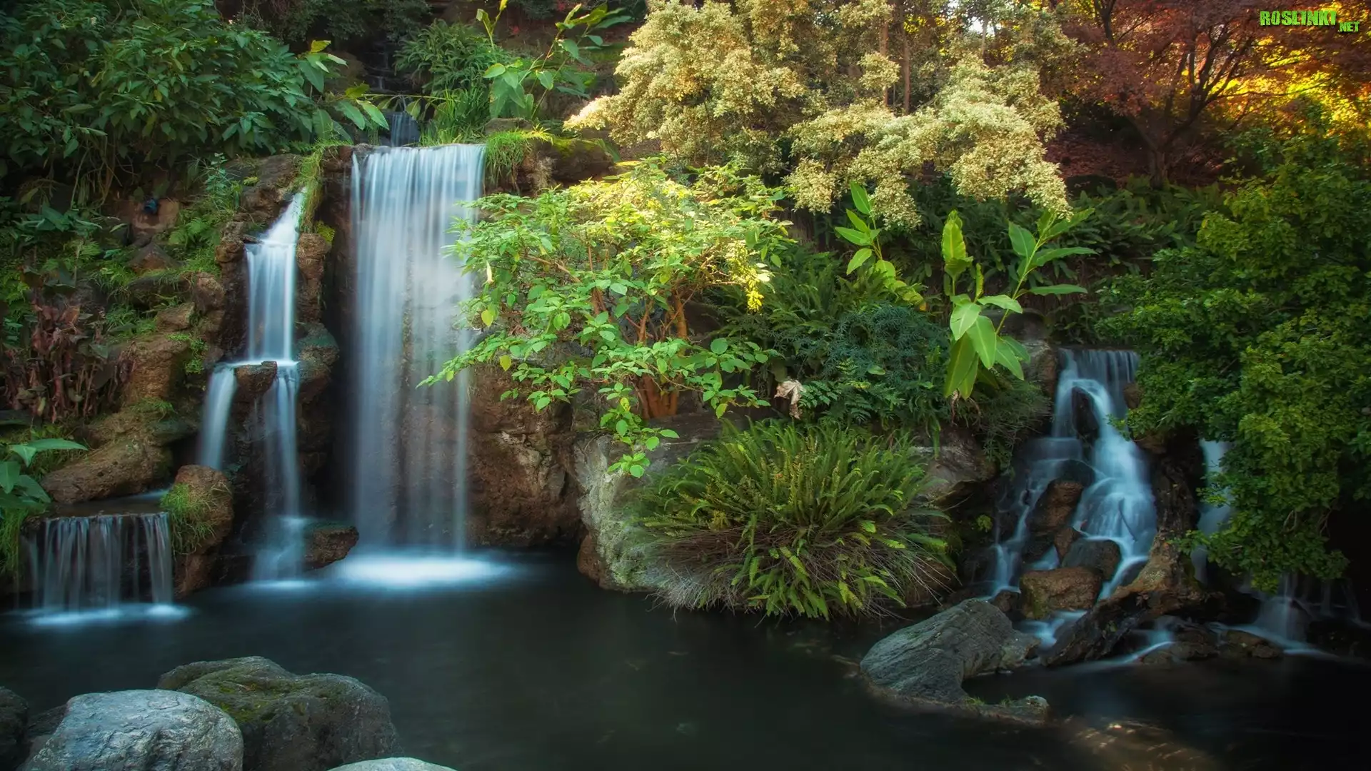 Wodospad Drzewa Góry, Las, Krzewy Pigwowiec, Japoński Zachód Słońca, Chmury, Drzewo Ośnieżone, Stoki, Gór, Świerki Fioletowa, Magnolia Stół, Jaśmin, Truskawki Lato, Drzewo Biała, Magnolia, Kwiat, Liście Drzewo, Zachód Słońca Dzika, Róża Jagody, Wiciokrzewu Koń, Jesień, Drzewo Palmy, Zachód Słońca