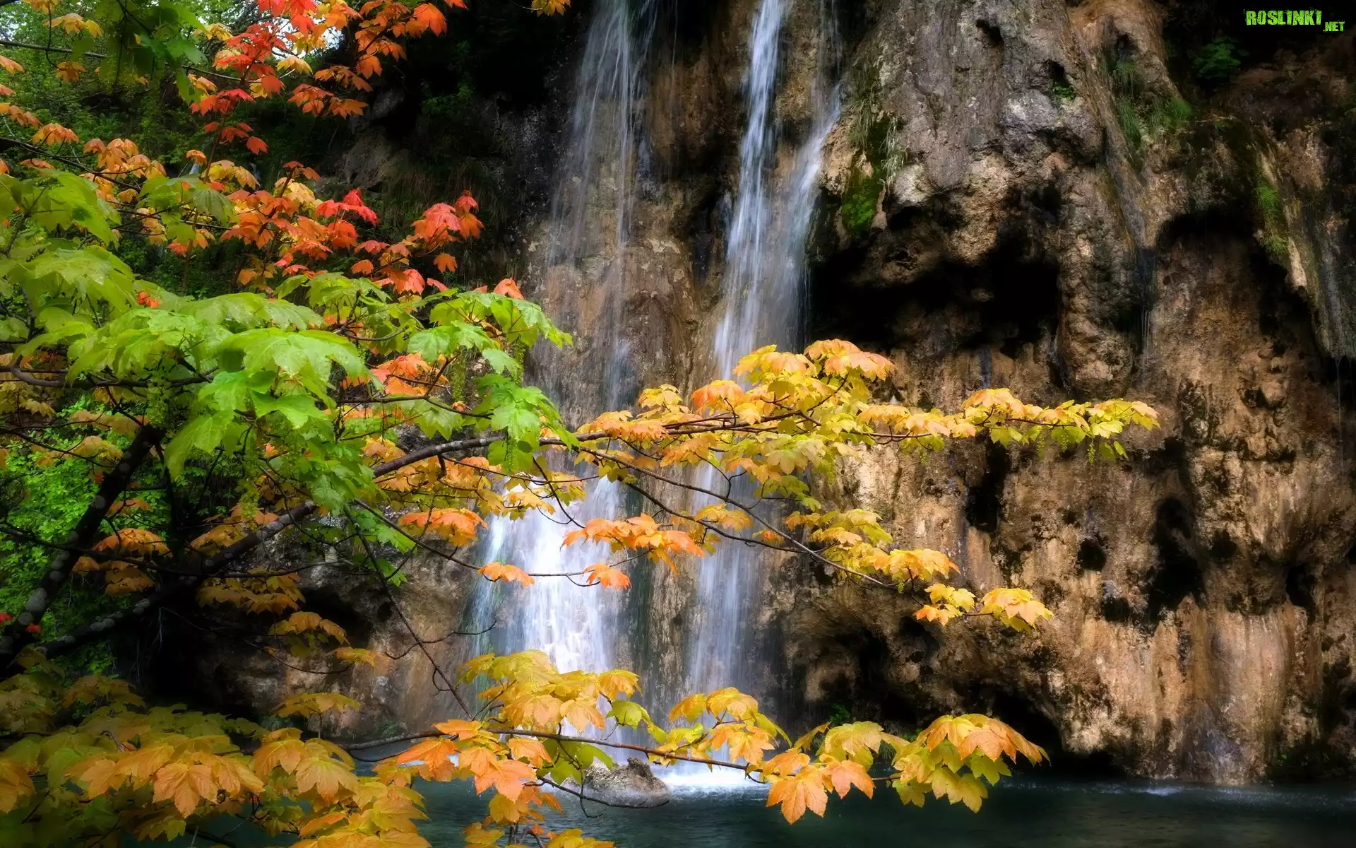Rośliny: Wodospad, Skały, Drzewa, Jesień