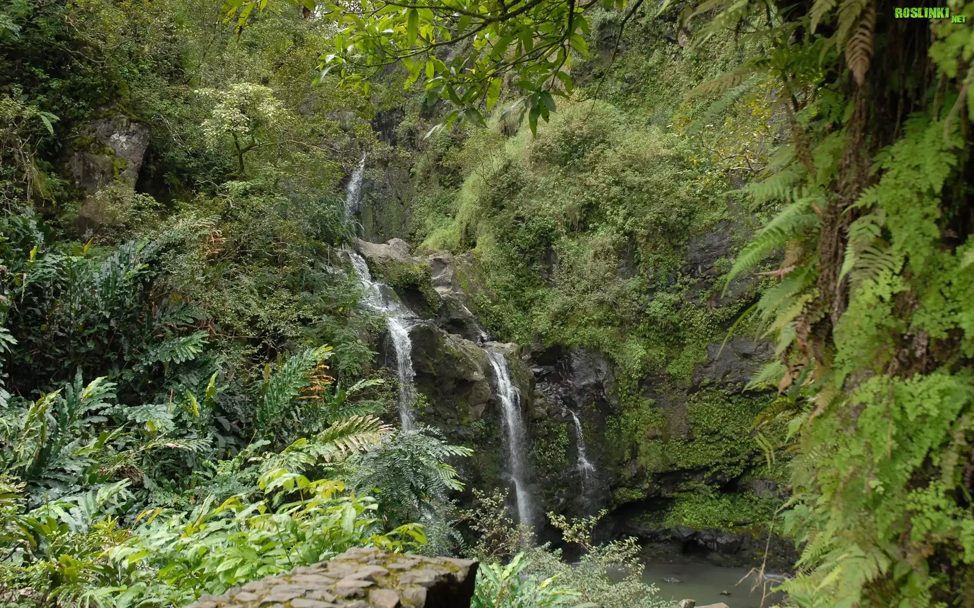 Rośliny: Wodospad, Góry, Skała, Drzewo, Krzew