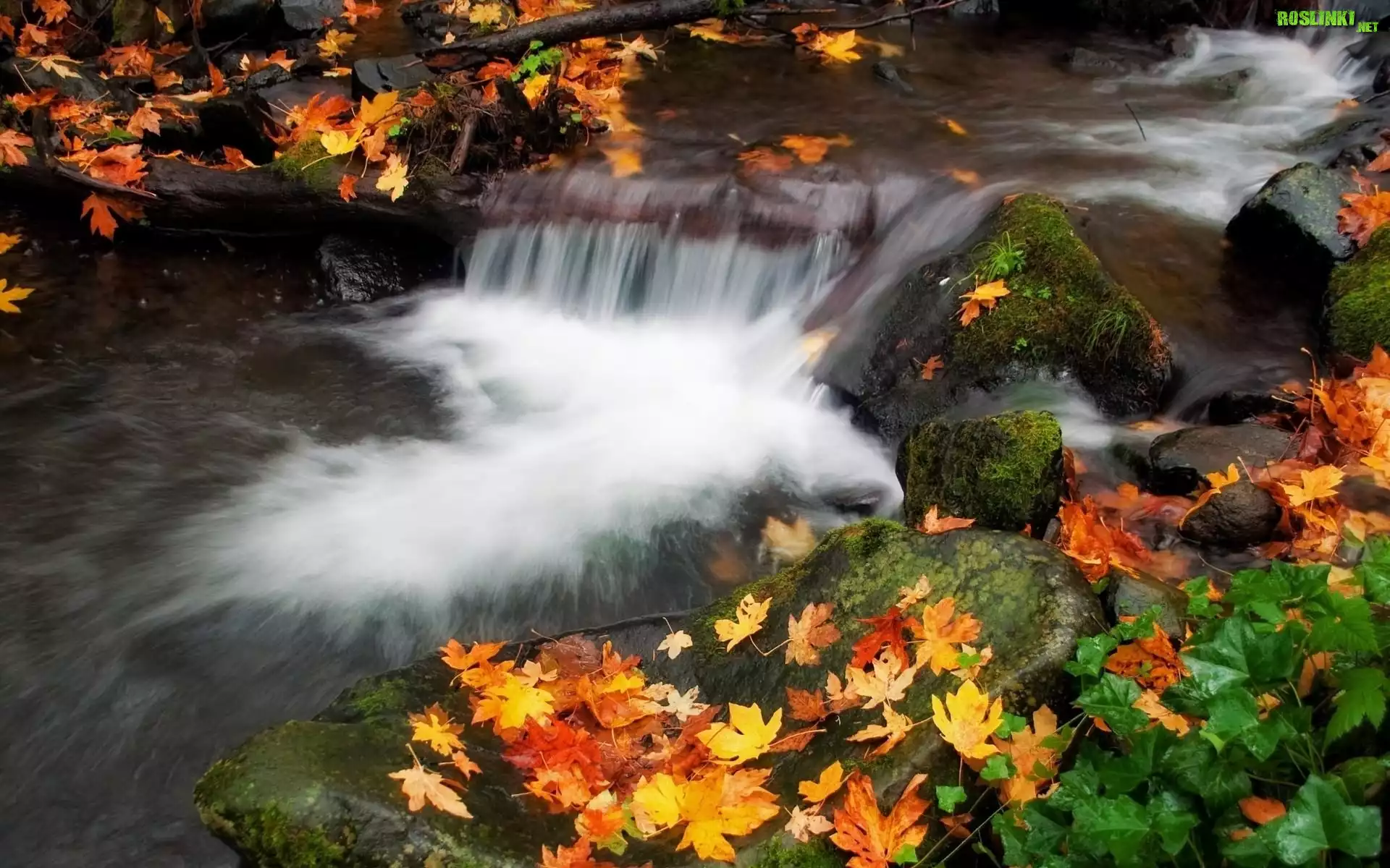 Rośliny: Wodospad, Skały, Las, Liście, Jesień