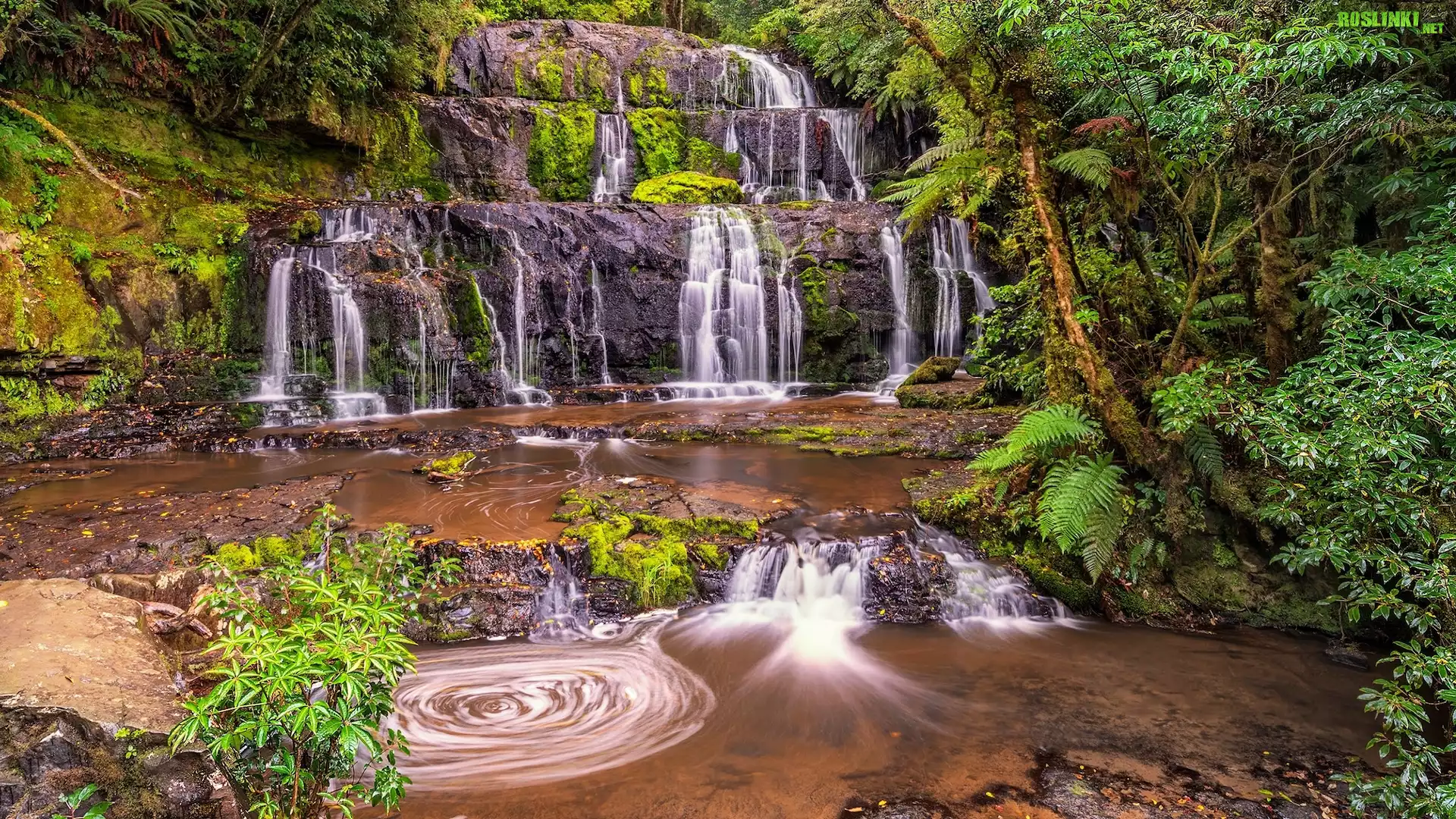 Rośliny: Wodospad, Rzeka, Skała, Roślinność, Drzewa