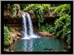 Skały, Wodospad, Rośliny, Rzeka, AI