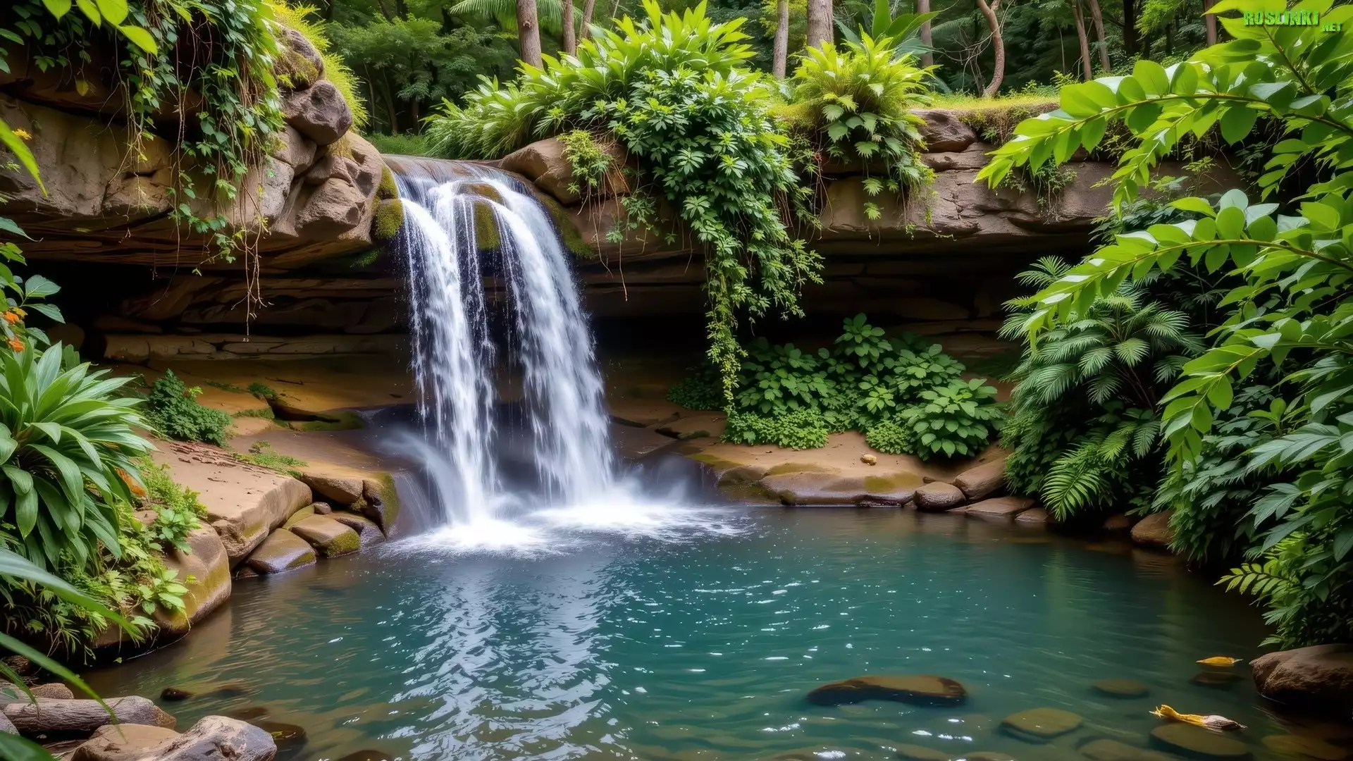 Rośliny: Skały, Wodospad, Rośliny, Rzeka, AI