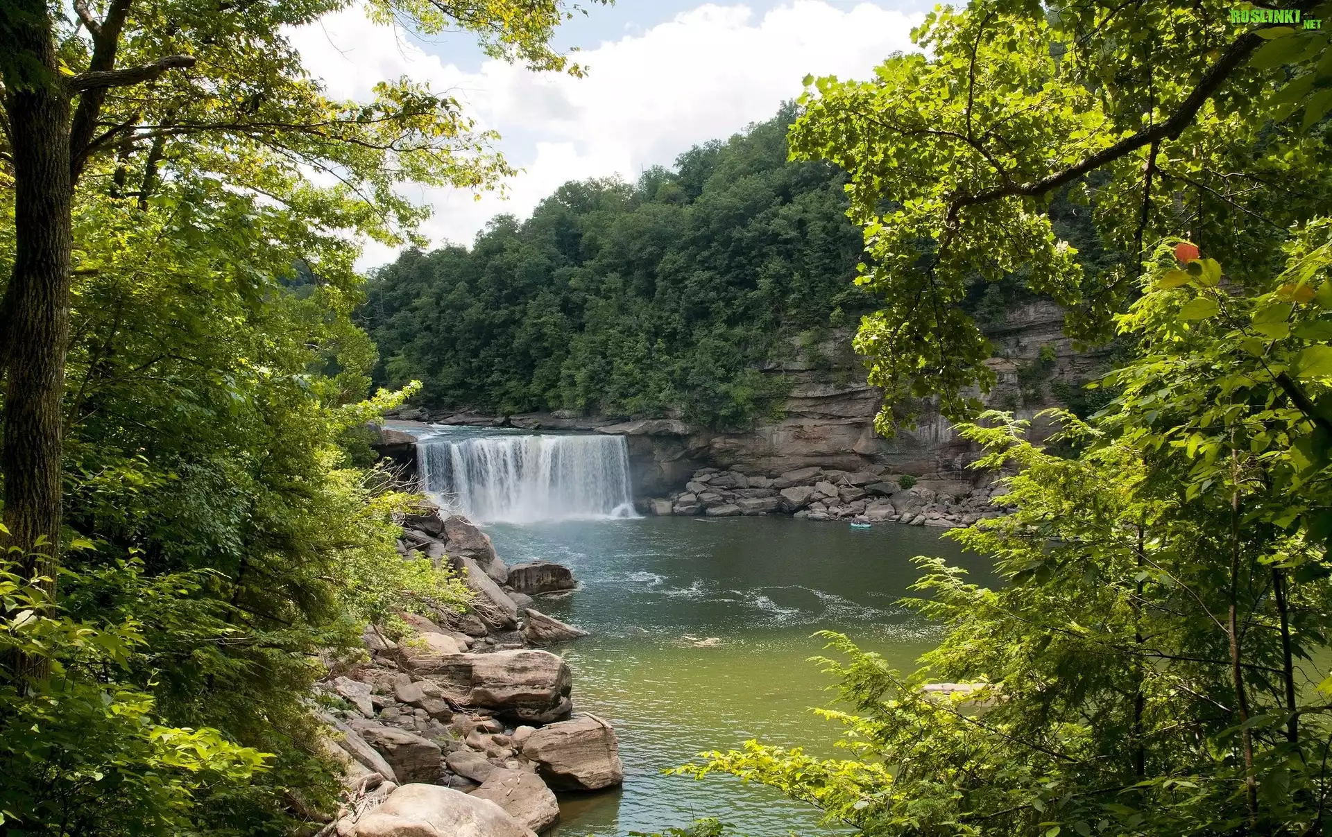 Rośliny: Wodospad, Rzeka, Skały, Drzewa